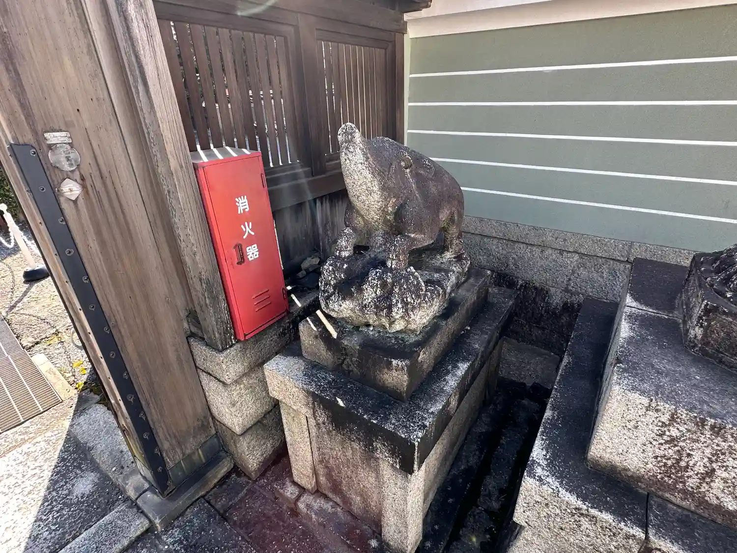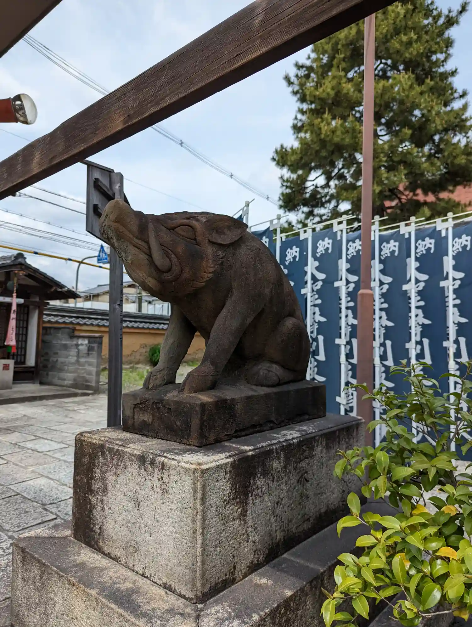 摩利支尊天堂には「狛猪」が鎮座しています
