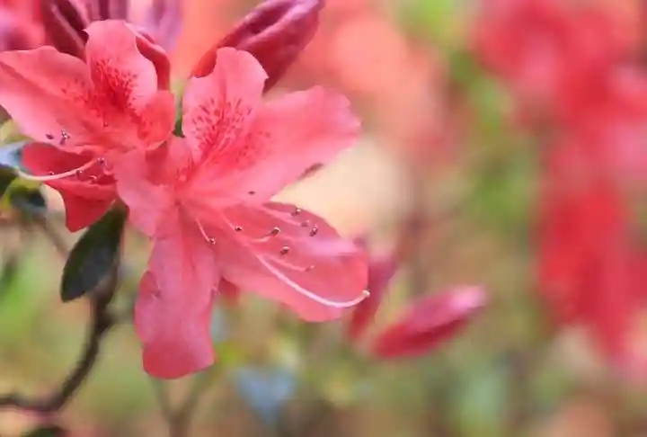 つつじの花と青紅葉の色の鮮やか…