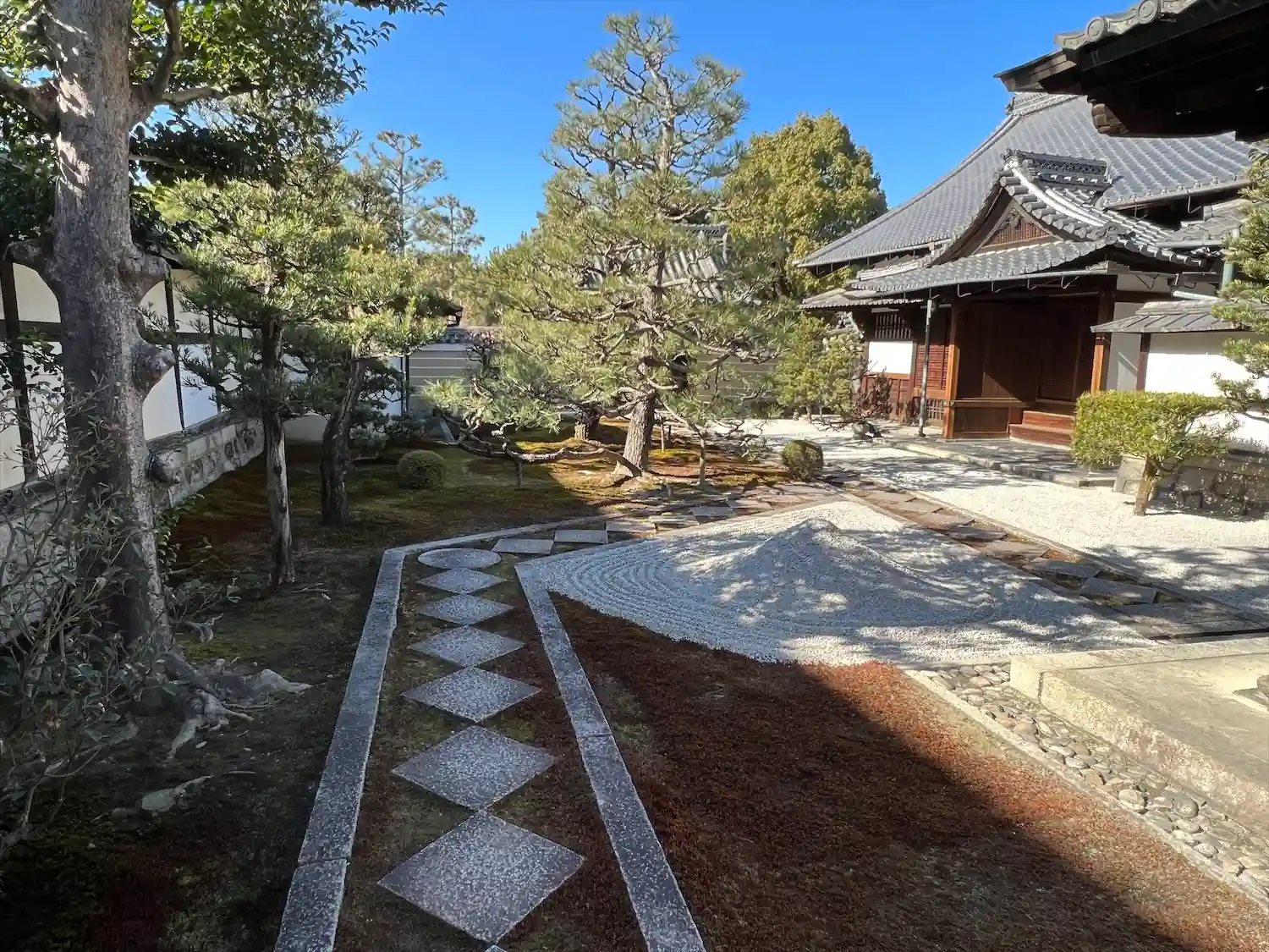 庭奥の墓参道から大書院と左に方丈。