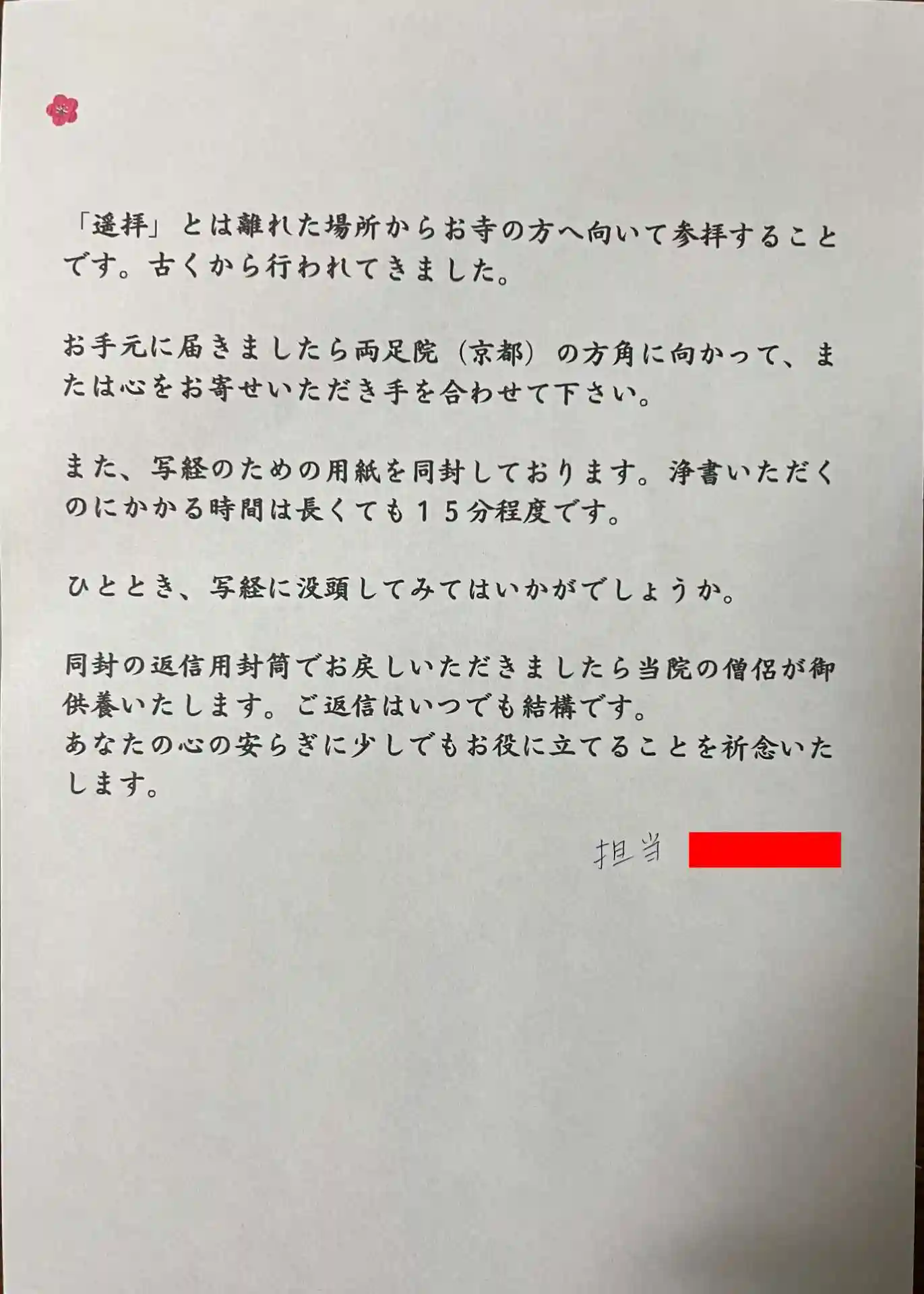 早速、京都の方向へ一礼のあとに写経を済ませました。