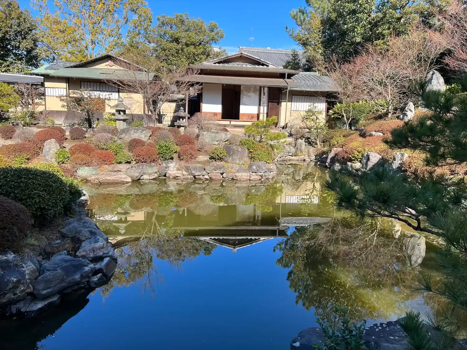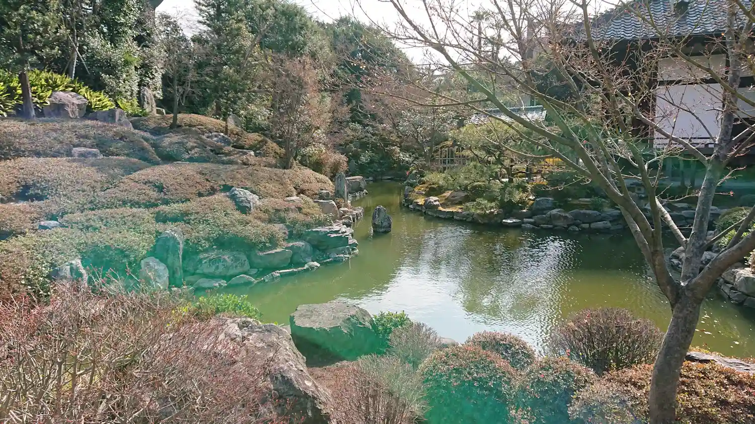 庭園。左奥が茶室。