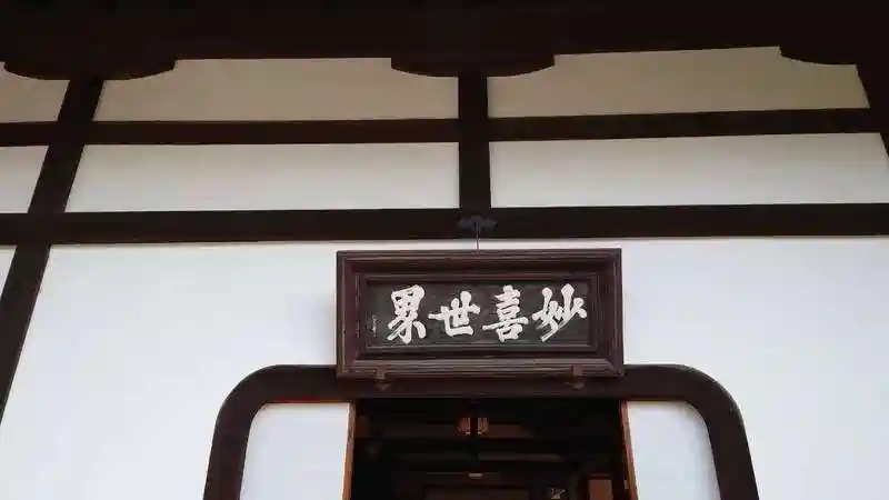 霊源院の扁額です。「妙喜世界」と書かれています。