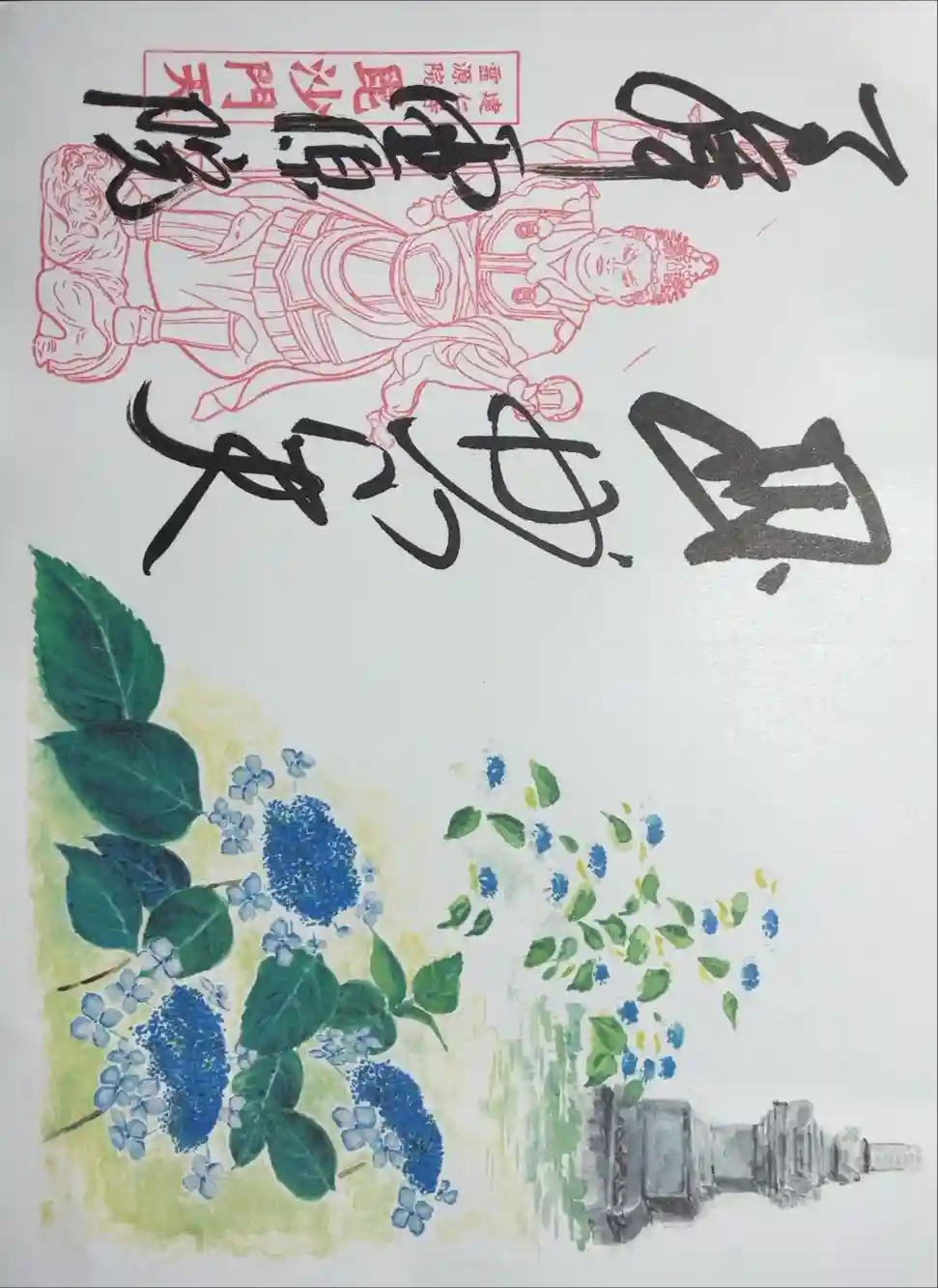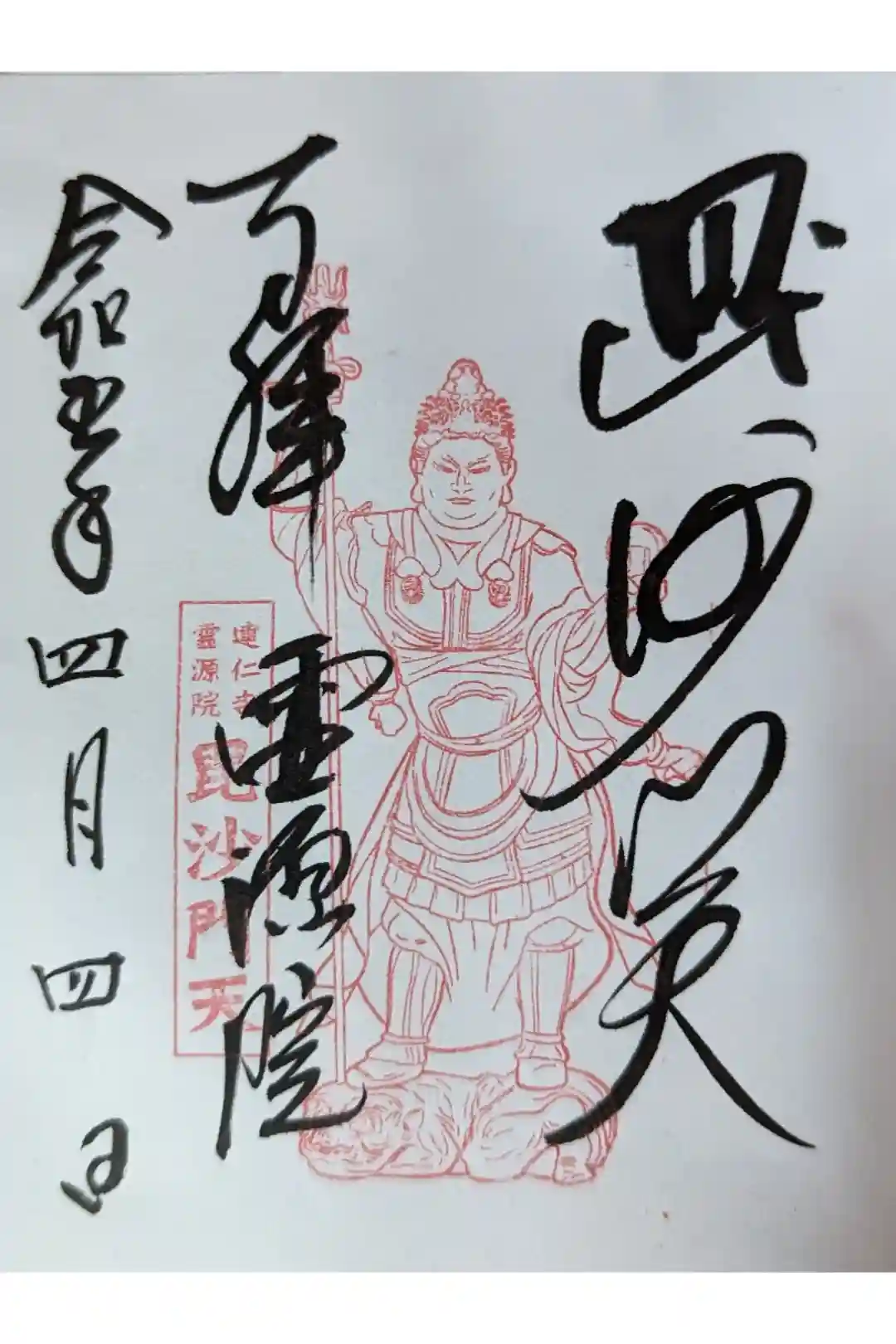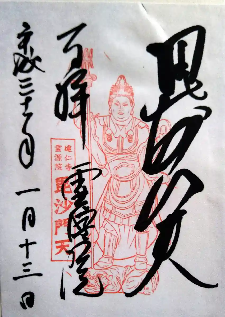壁画絵師 木村英輝氏が奉納した屏風絵がご朱印に❣️ 毘沙門天と甘茶の木がデザインされている☺️