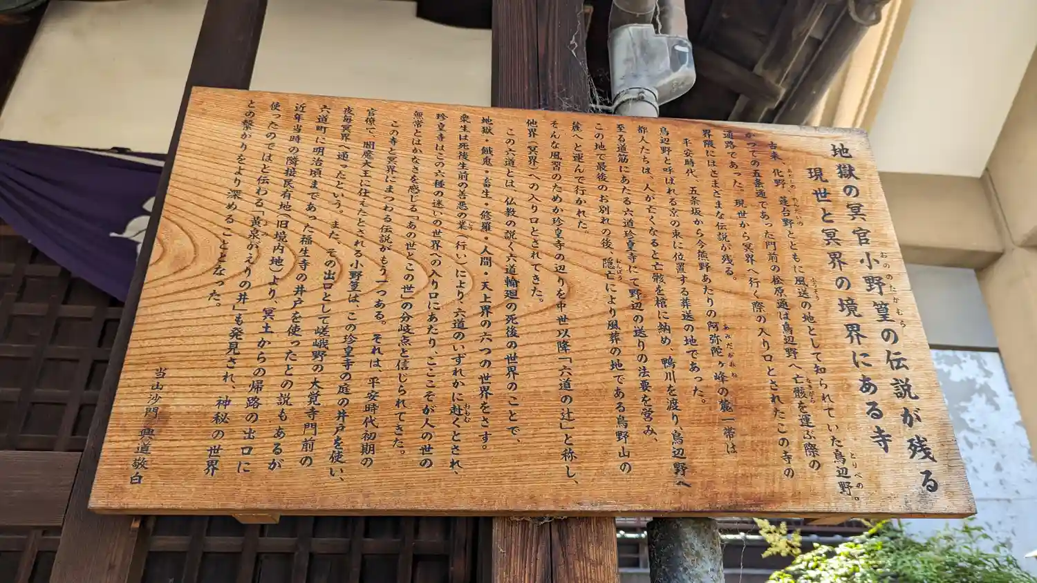 閻魔大王に仕えていたという小野篁(たかむら)ゆかりの寺です。この寺の辺りは、あの世とこの世の境と…