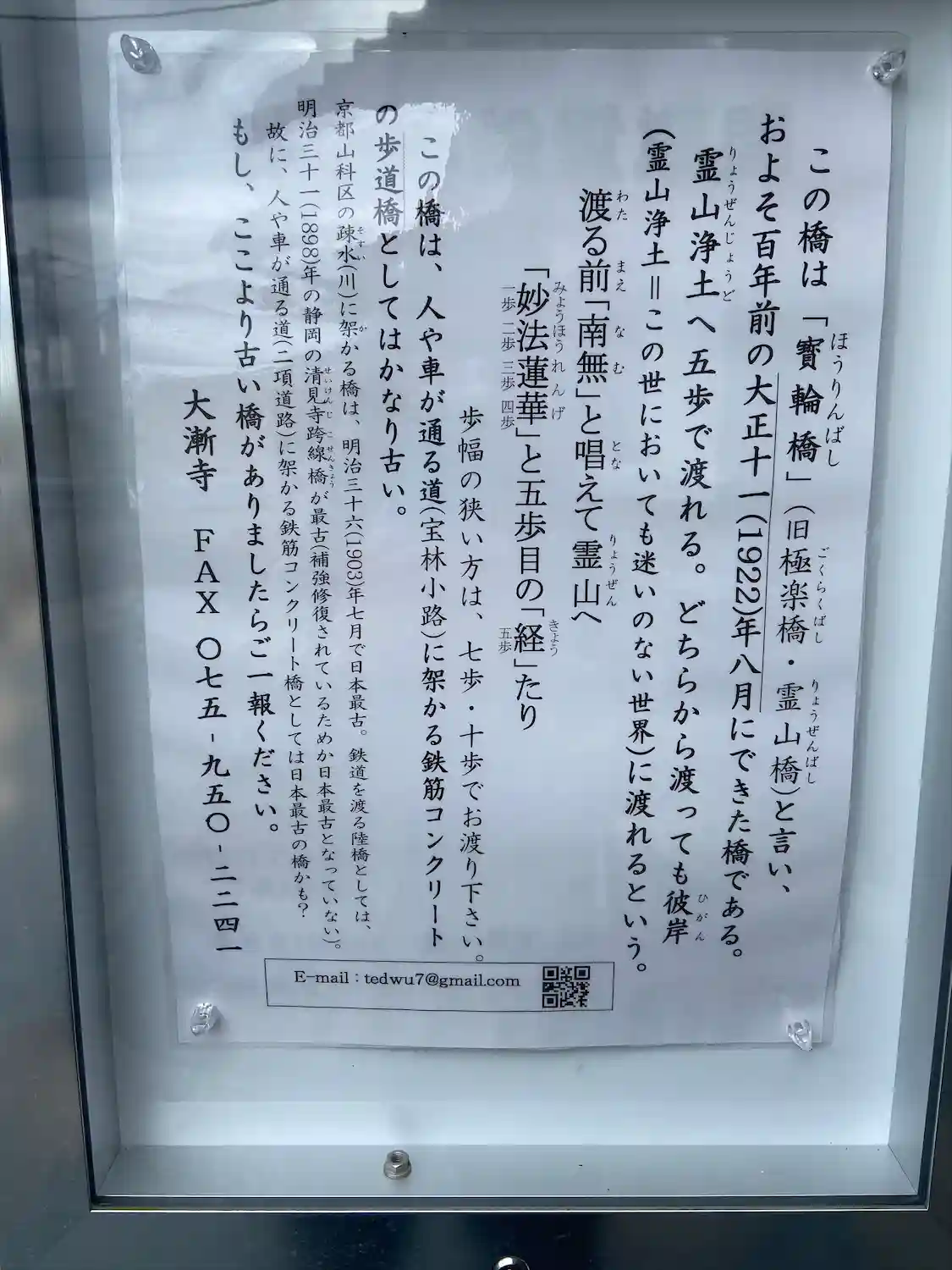 ※霊山橋は、1922年の鉄筋コンクリート製で、恐らく1番古い鉄筋コンクリートの陸橋だそうです。✨(゚Д゚)!!!