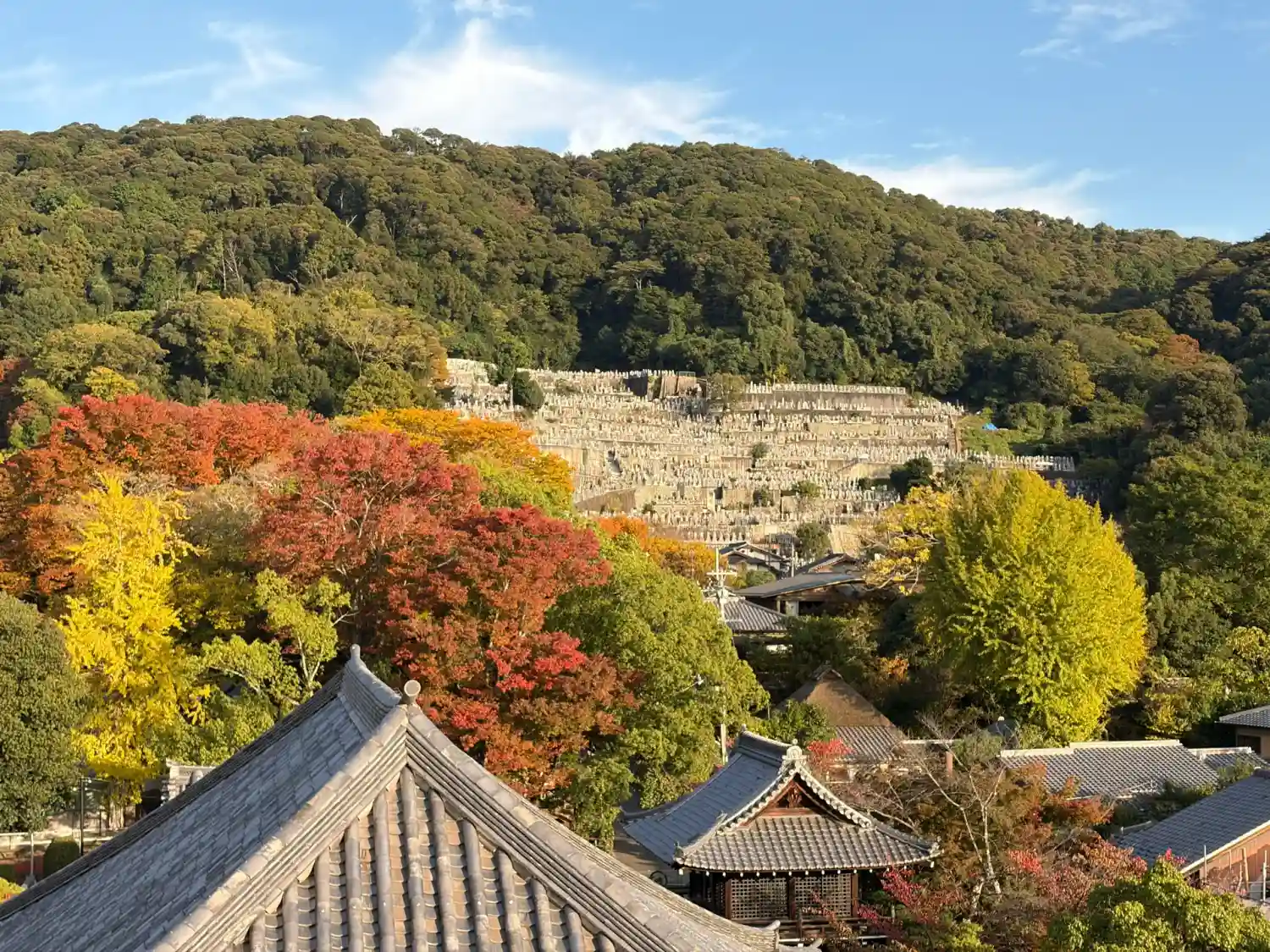 残念ながら墓地には、檀家さんと関係者以外は入ることができなかったので、入口から遠目に。。。