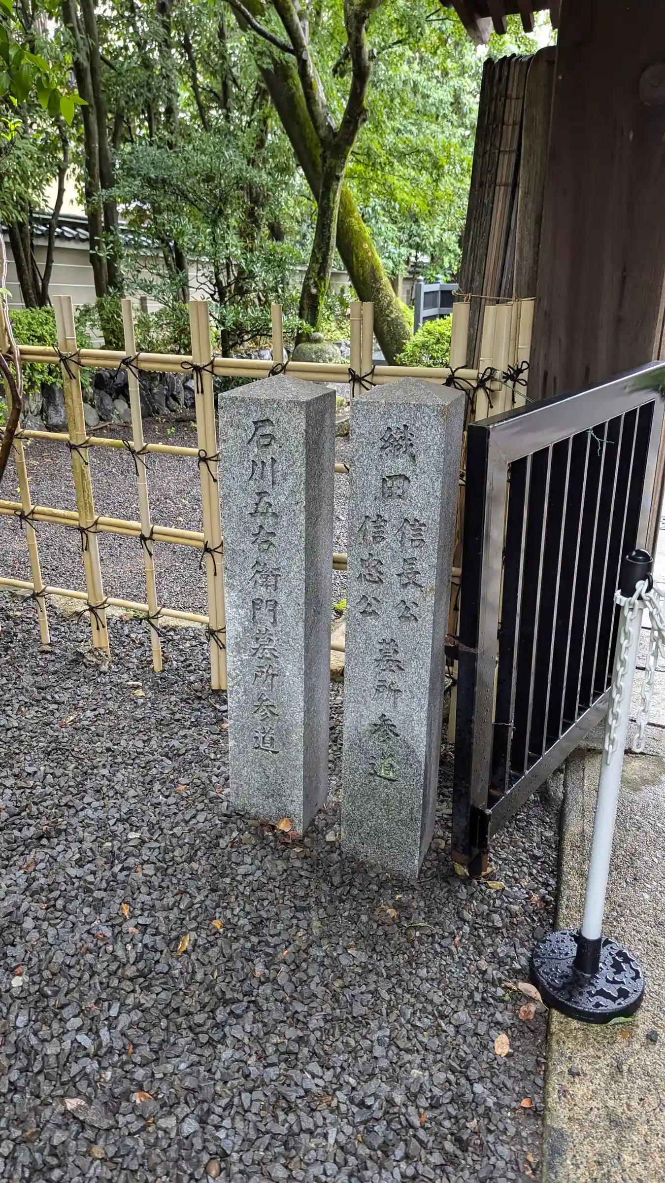 この奥には、織田信長・信忠親子のお墓があり、石川五右衛門もここに眠っています。