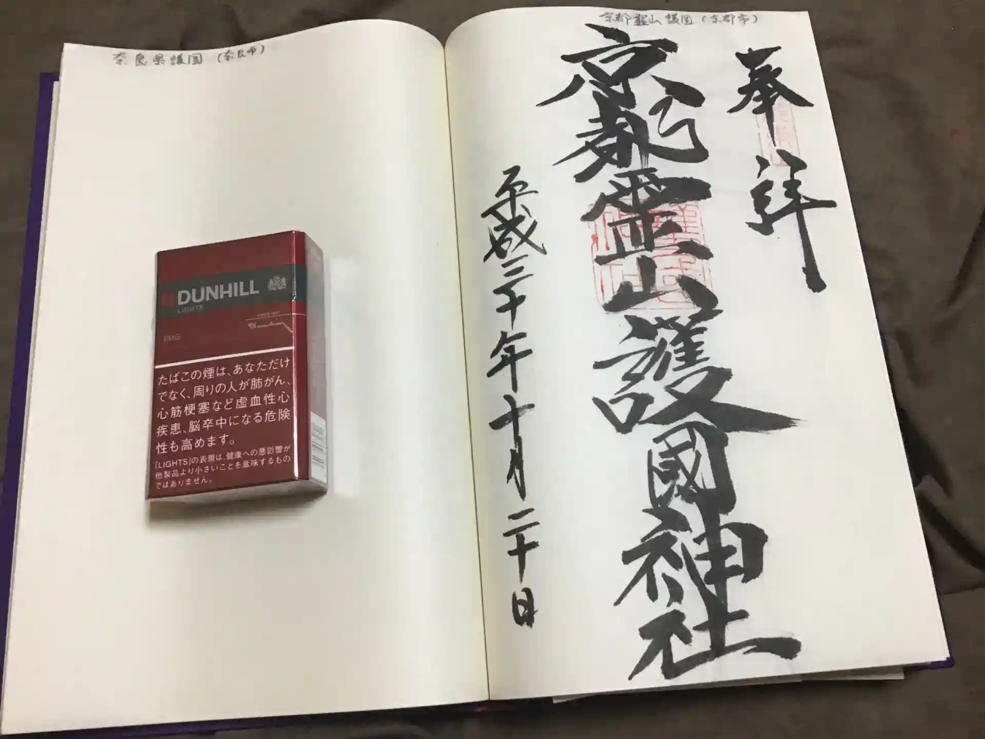 御朱印は、自前の護国神社朱印帳 ノートサイズにいただきました。