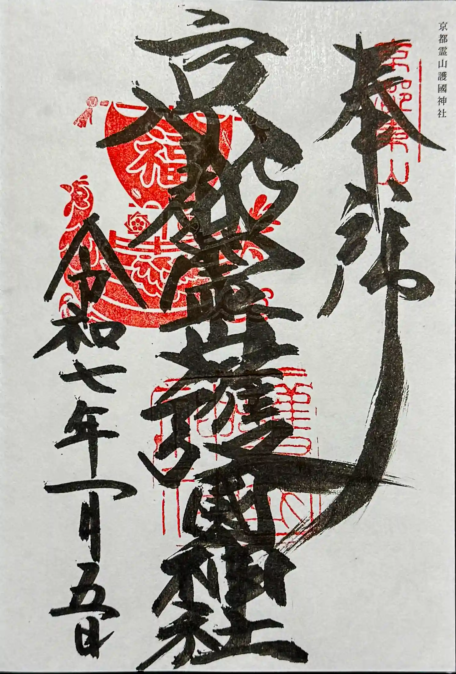 母親が京都用の御朱印帳を自宅に置いてきてしまったので下鴨神社へ先に上がって御朱印帳を拝受してから護國神社へ上がらせていただいたので、この日は参拝ルート的に効率悪いです。