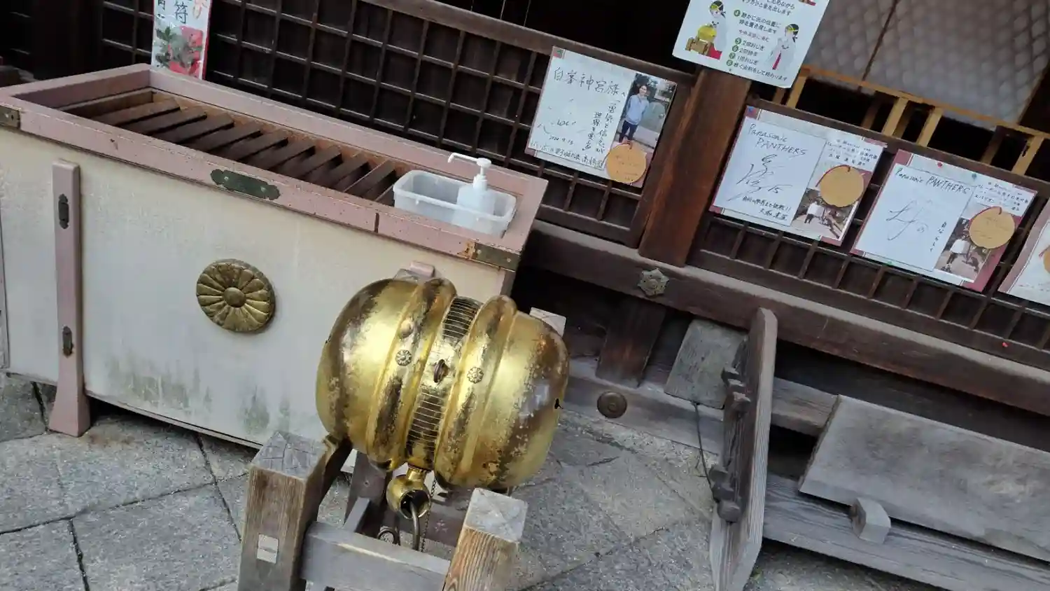 心願成就の御利益がある鞠の鈴。(良く鳴るから転じて)両手で持ってガラガラ鳴らすと願いが叶うとのこと。コロナ禍で、慣らすのを控えてしまいました。