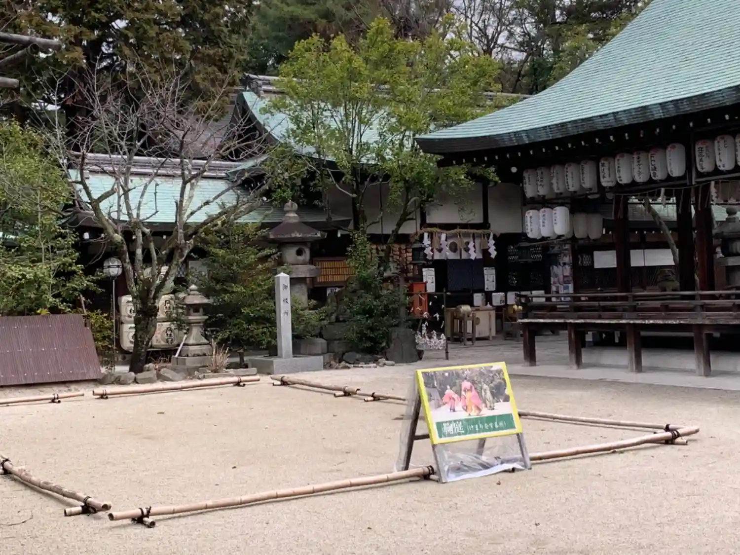 境内の蹴鞠場。神事の際、ここで蹴鞠が行われる。