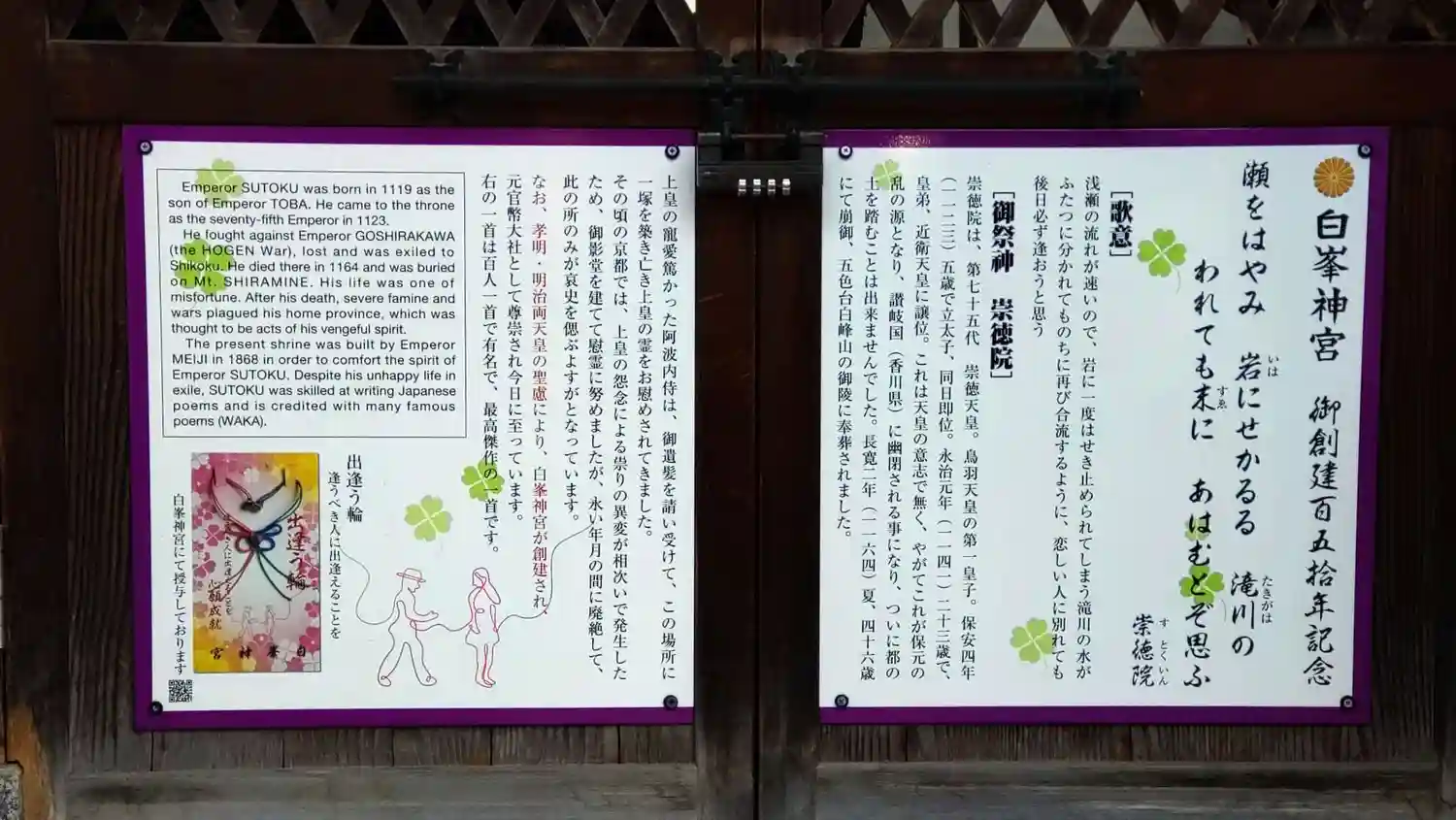 ご祭神は崇徳天皇と淳仁天皇。