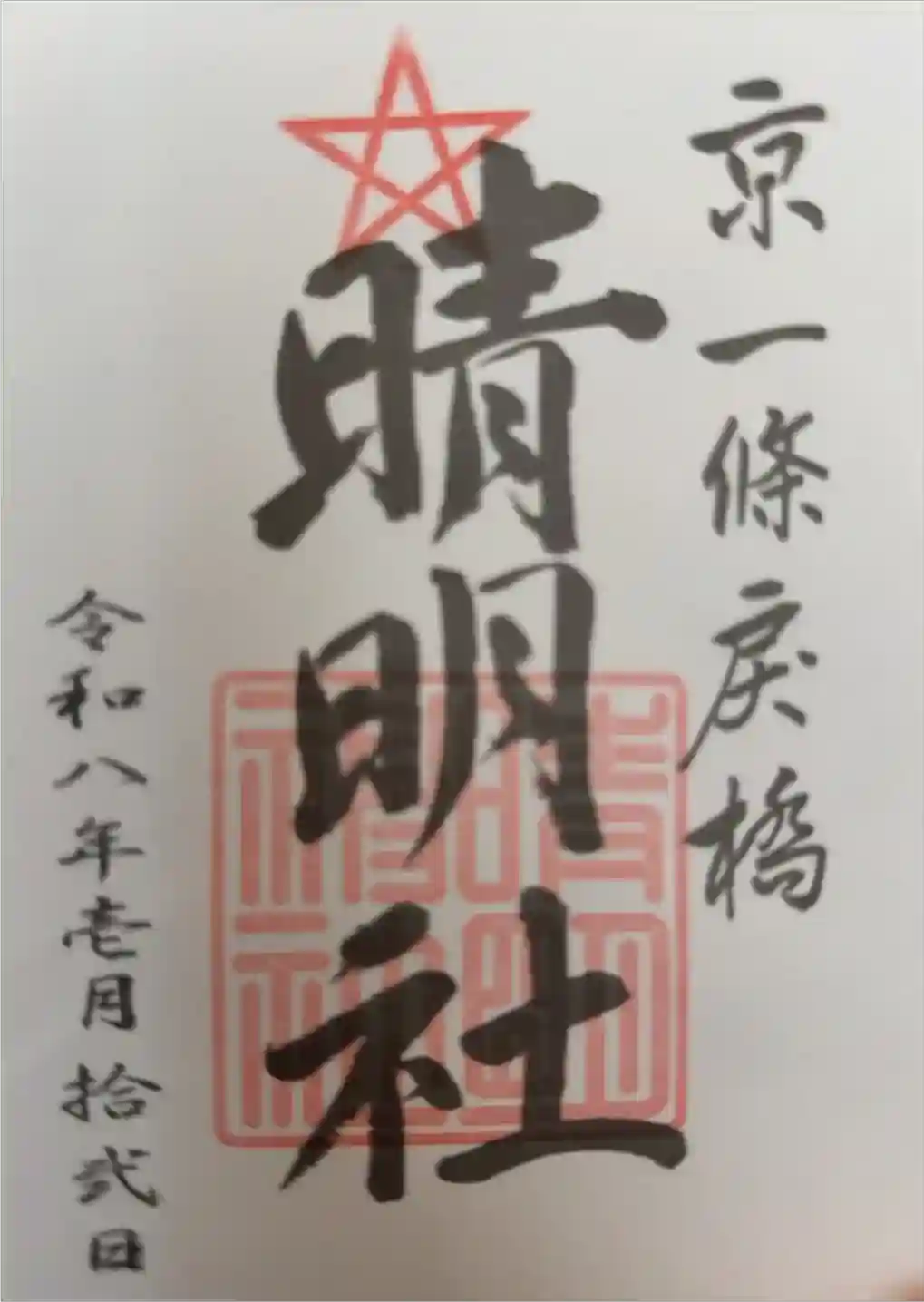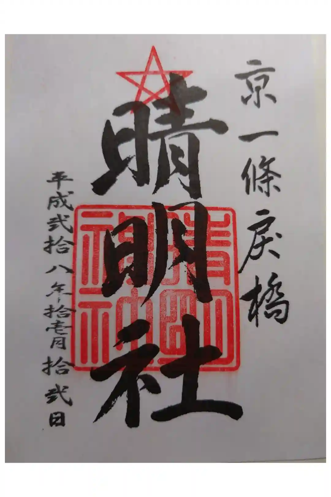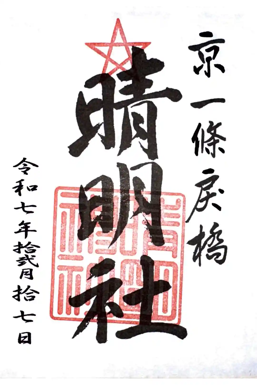 神社名の朱印が押され、右に「京一條戻橋」と書かれています。