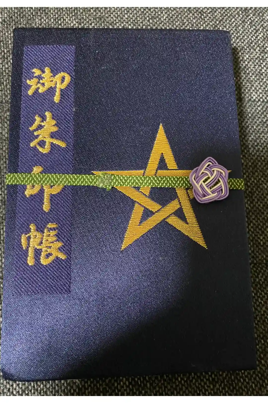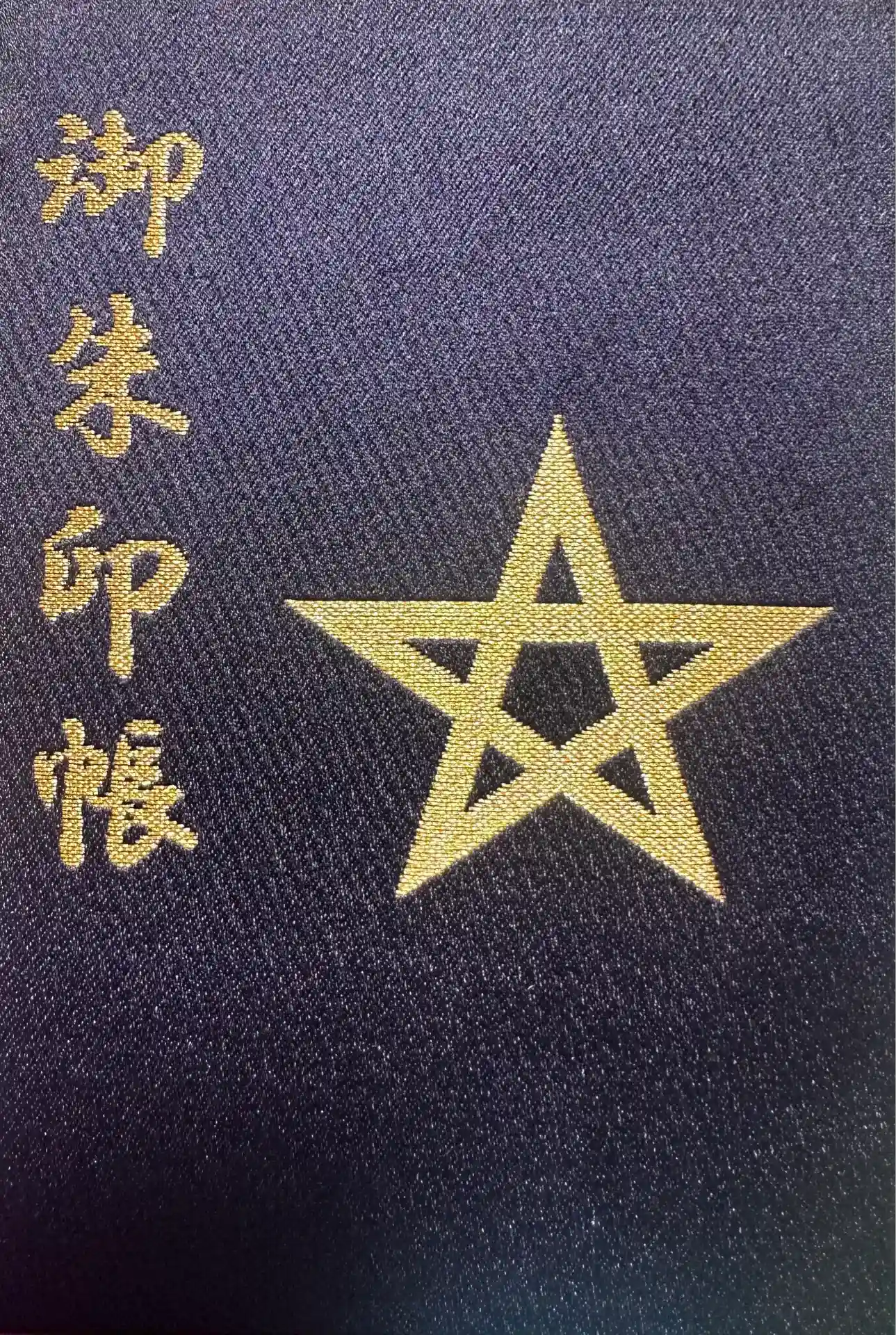 西陣ならではの、紺地に金糸の刺繍が美しい御朱印帳です。