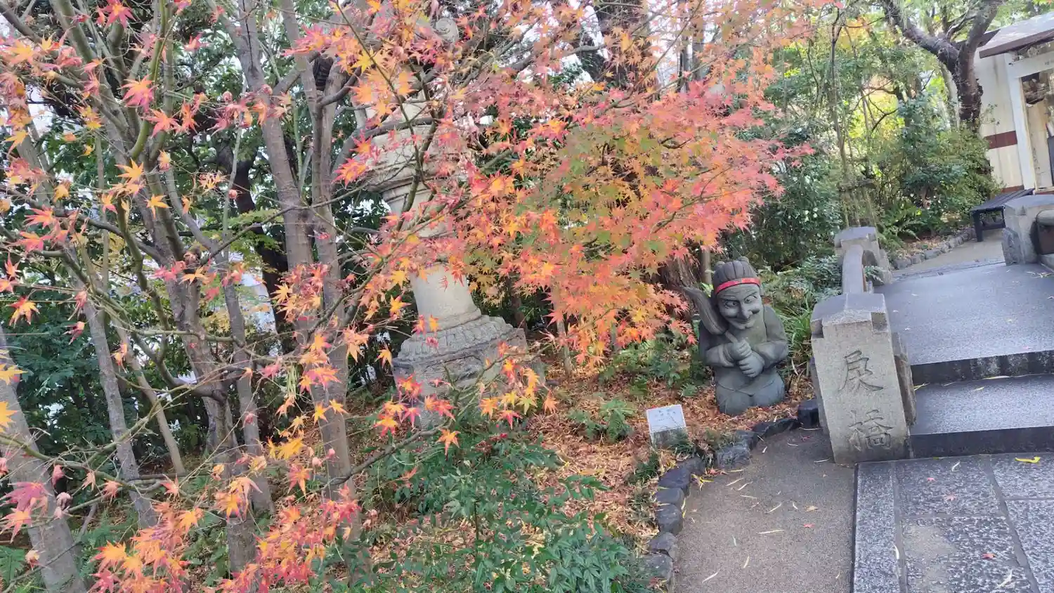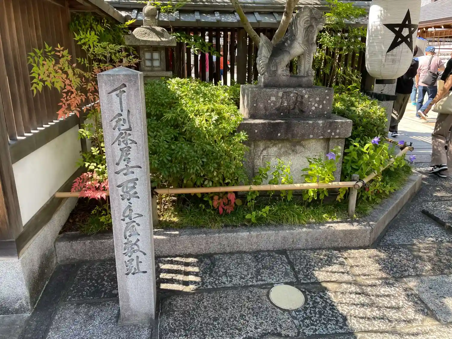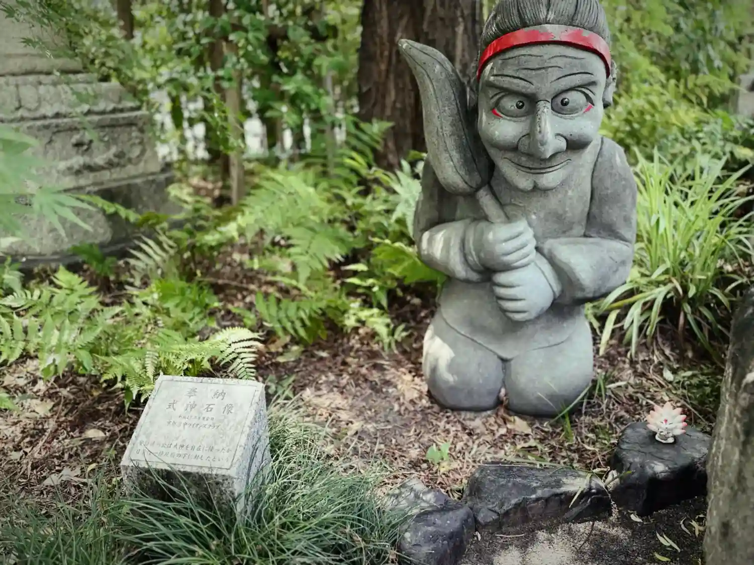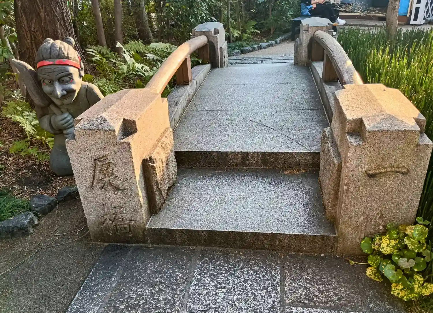 明治まで使われていた橋の石材をそのまま縮小移植した旧一条戻橋のオブジェ。奥に見えるのは式神だそうで。