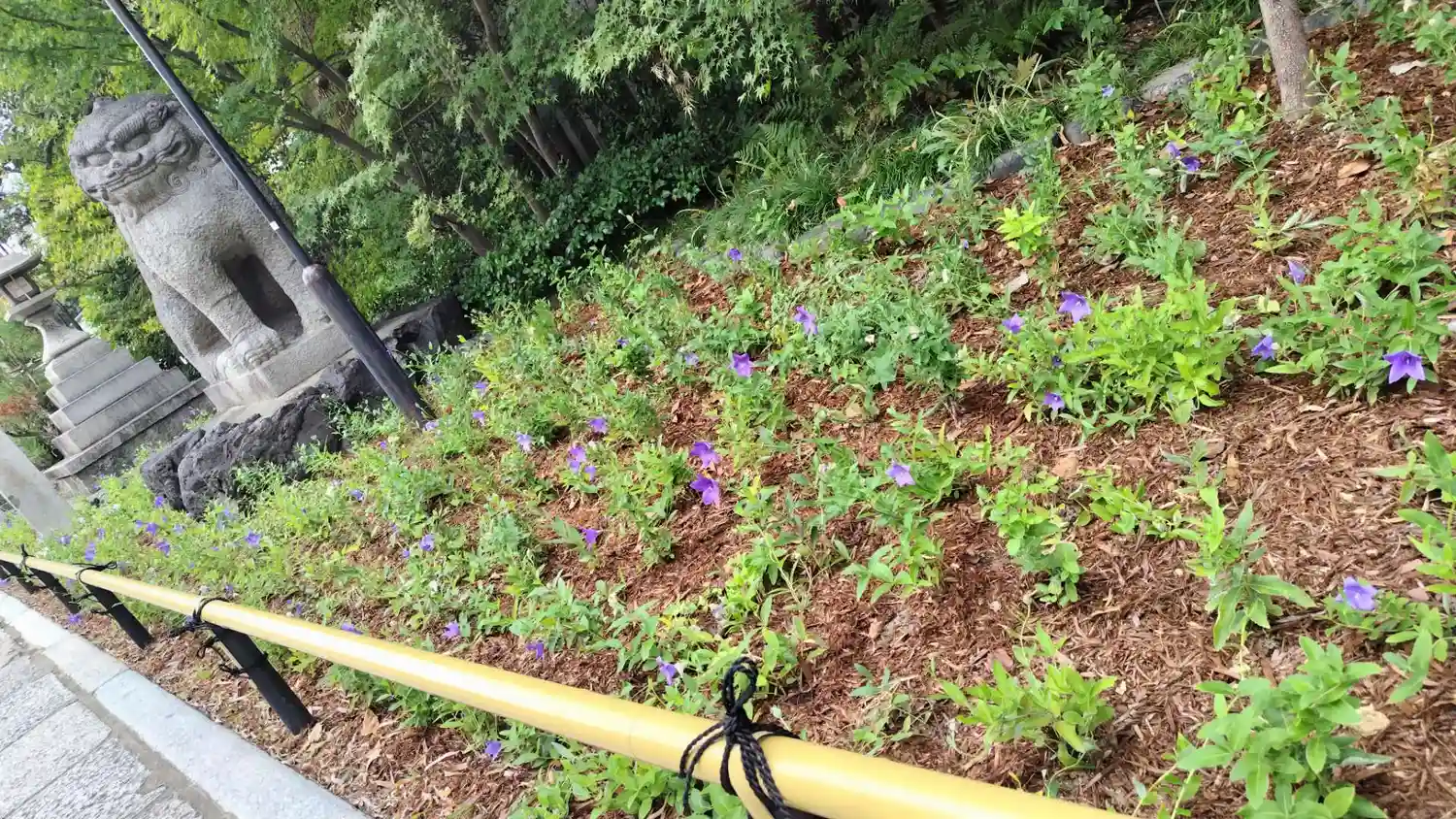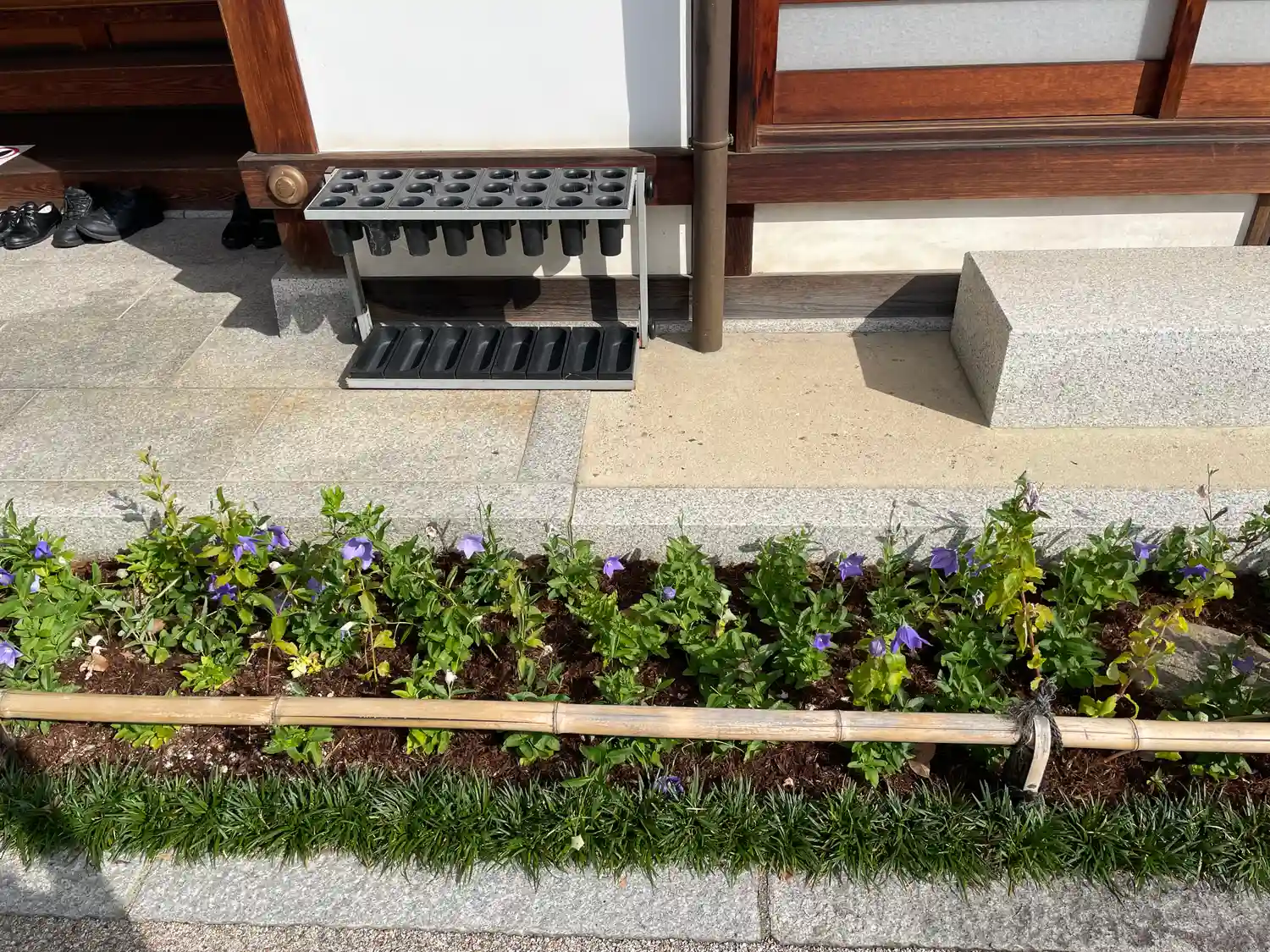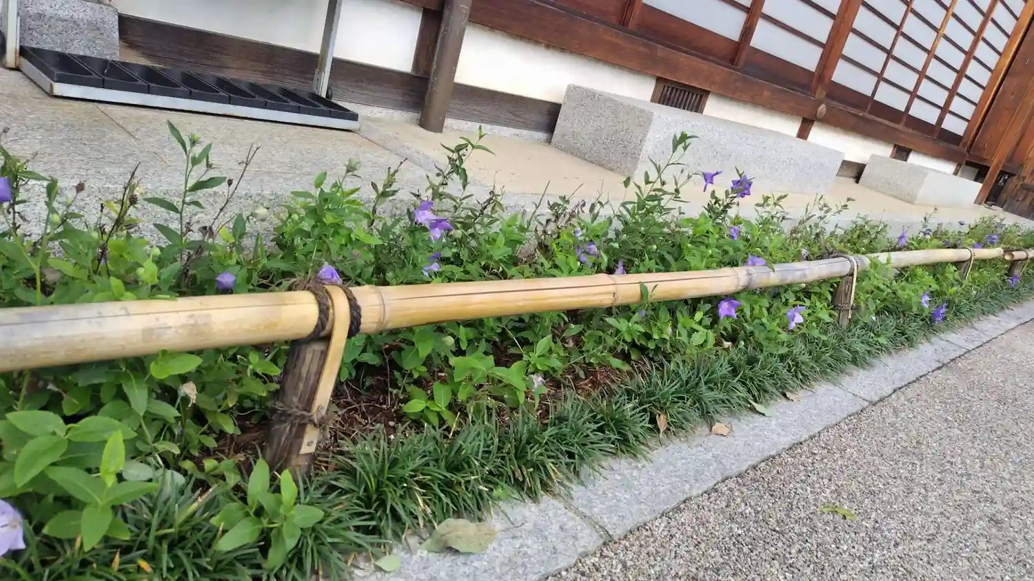 晴明神社より、戻橋(の複製)の傍らの紫蘭。