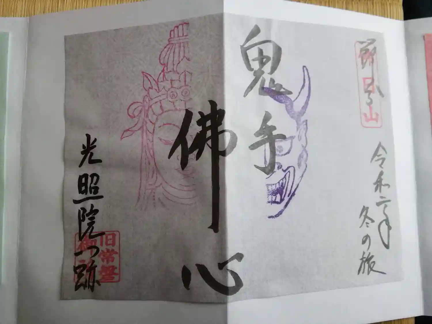 京の冬の旅。カラーの御朱印三体で、オマケニ頂いた見開き御朱印。