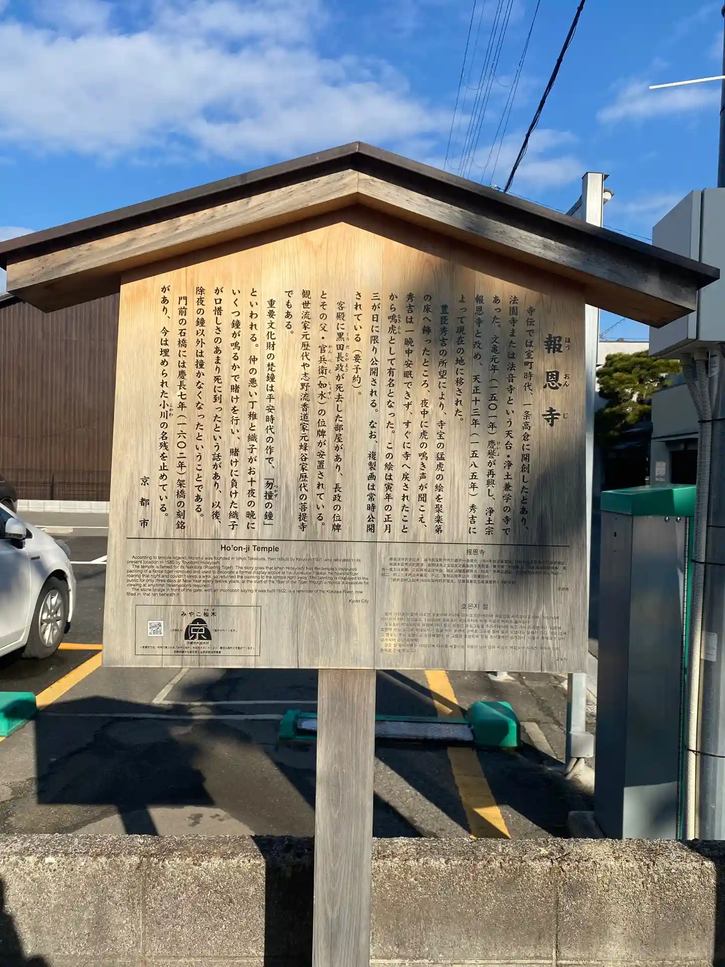 | ご由緒 | 「鳴虎」の通称は、この寺の宝である虎の図を、秀吉が聚楽第へ持ち帰ったところ、夜毎に虎が吠えたために寺に返したという伝説に由来する。武将・黒田長政の宿舎と伝えられ、長政が息を引き取った部屋も残っており、黒田官兵衛と長政の位牌が安置されている。 |