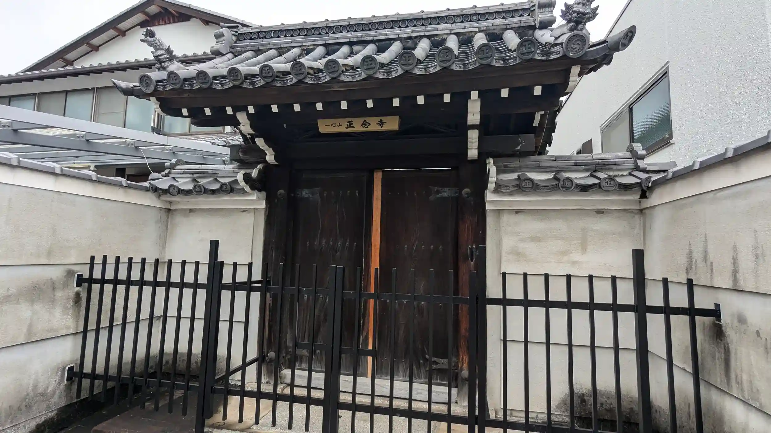 こちらも浄土真宗大谷派の寺院。山門が閉ざされており勝手口も見当たらず。山門前からお参り。後で調べたらご住職の奥様が京都新聞でコラムを掲載している有名な僧侶らしい・・・😲