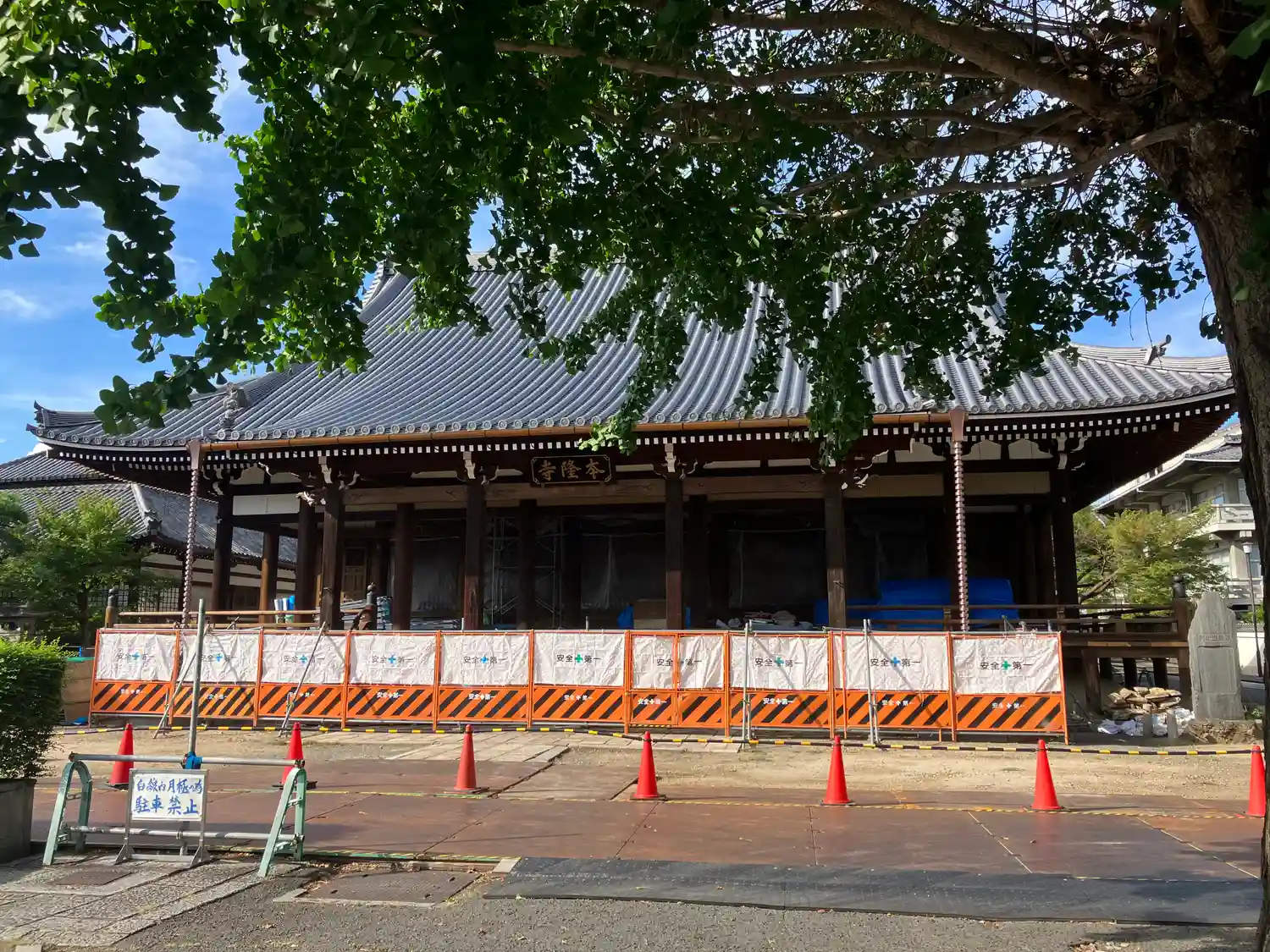 本堂の改修工事が終わり、落慶法要が行われたばかりの本隆寺。本堂前はまだ入れずなので遠目に手を合わせ…