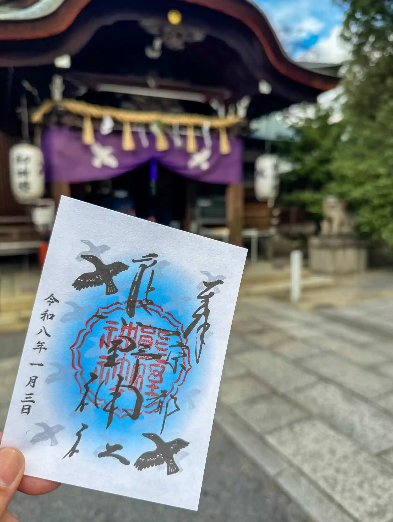 参拝させて頂きました。以前から丸太町の近くに来るたびに気になっていた神社だか、中に入ると意外とコンパクトな境内。御朱印は書き置きだが、御朱印帳も頂く。嵯峨天皇の御代の弘仁2年に日圓上人が熊野から勧請。後白河法皇も厚く崇敬。