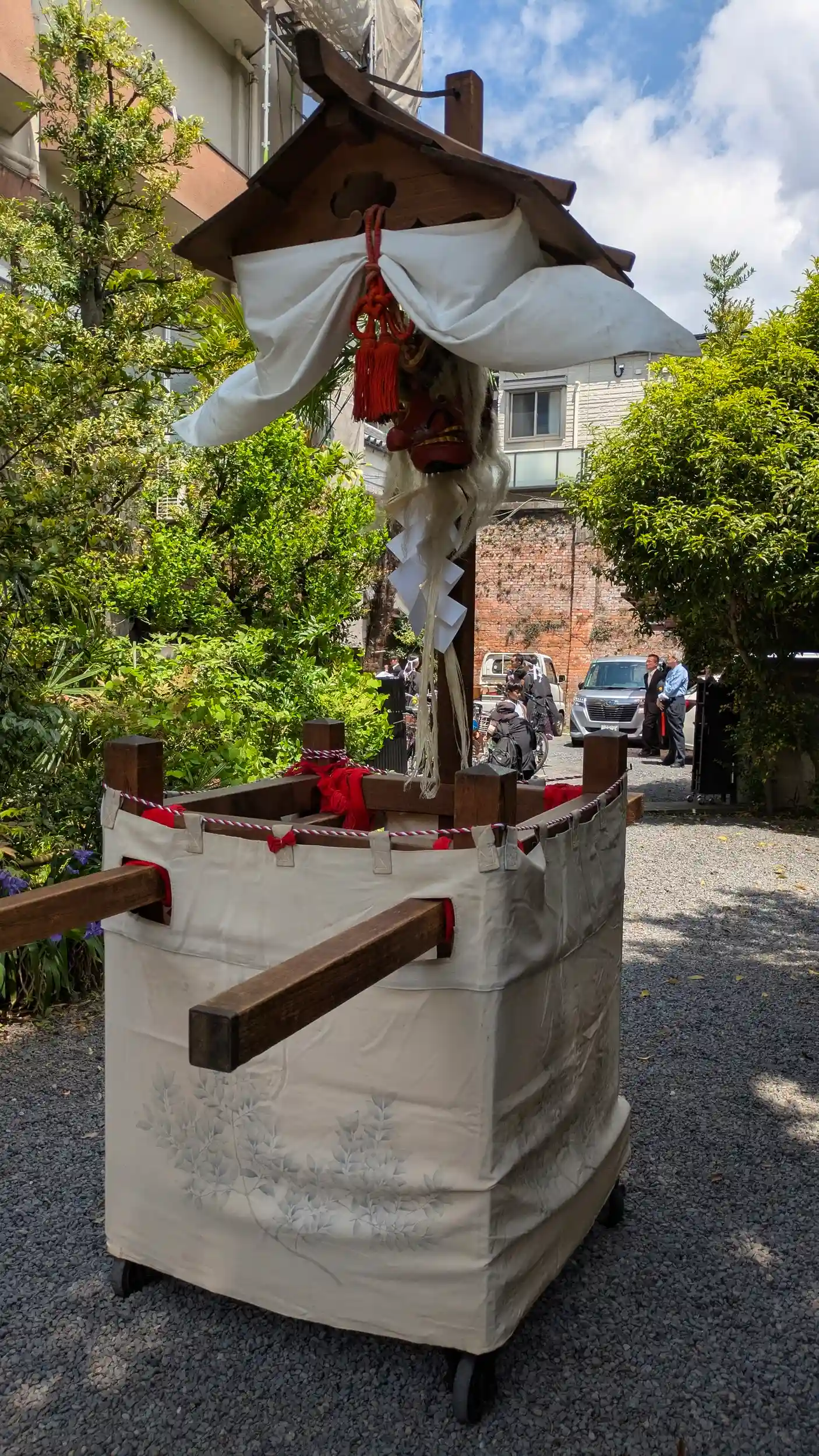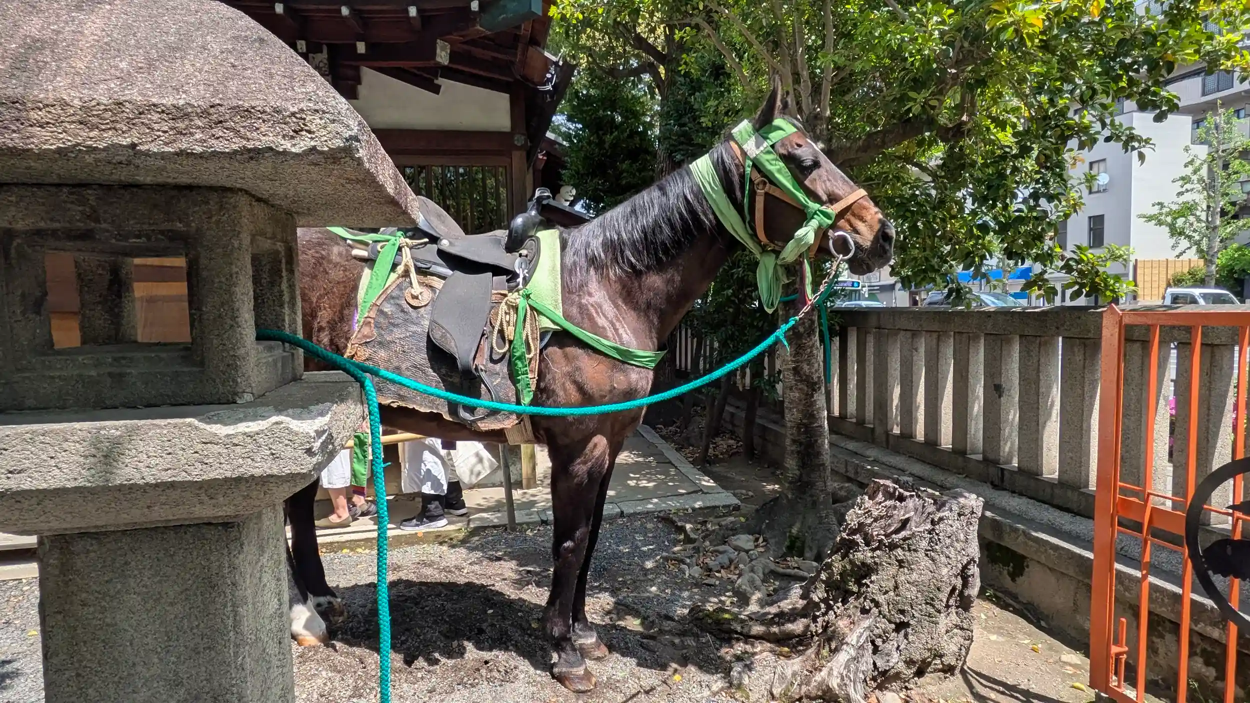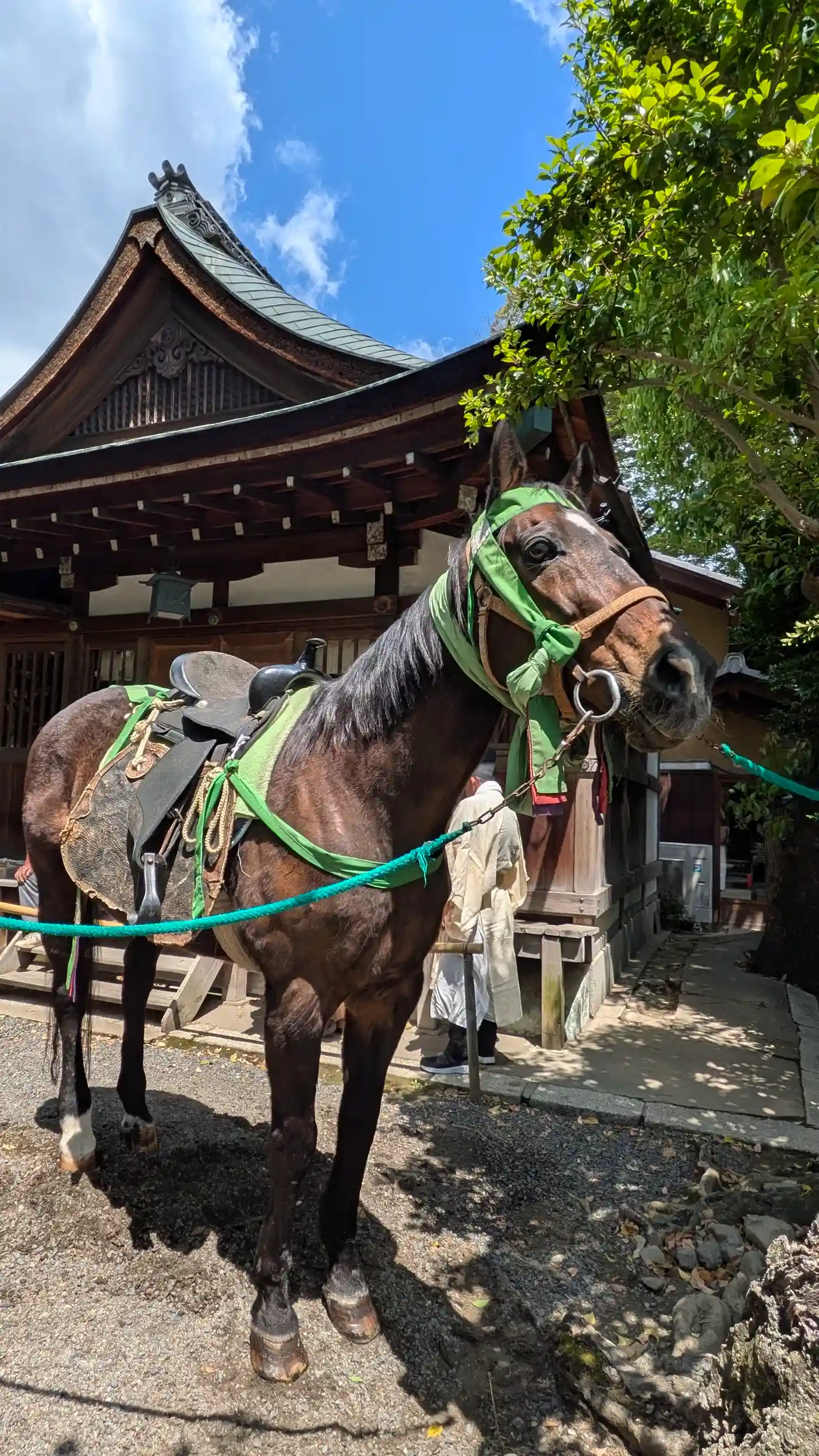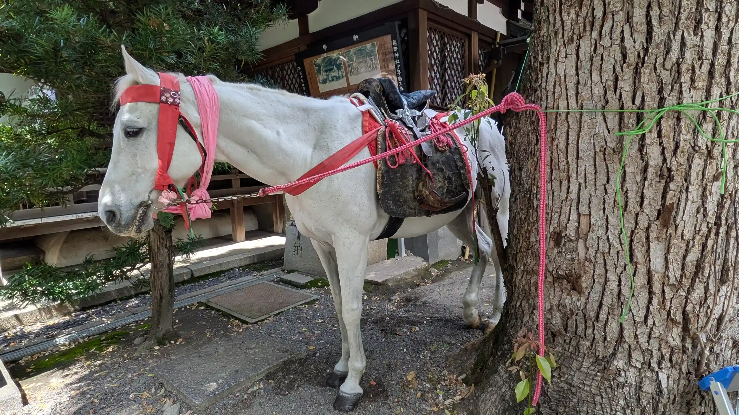 一路松ヶ崎へ目指していると熊野神社でお馬さん⁉をお見掛けして急遽お詣り。境内には拝殿前にお神輿があり、お馬さんは二頭。どうやら神幸祭だったようで勤皇隊の衣裳を着た子供たちが境内裏に待機しておりました。正午出発なようなのでちょっと待ち時間長いし断念。お参りして御朱印拝受してまいりました😊