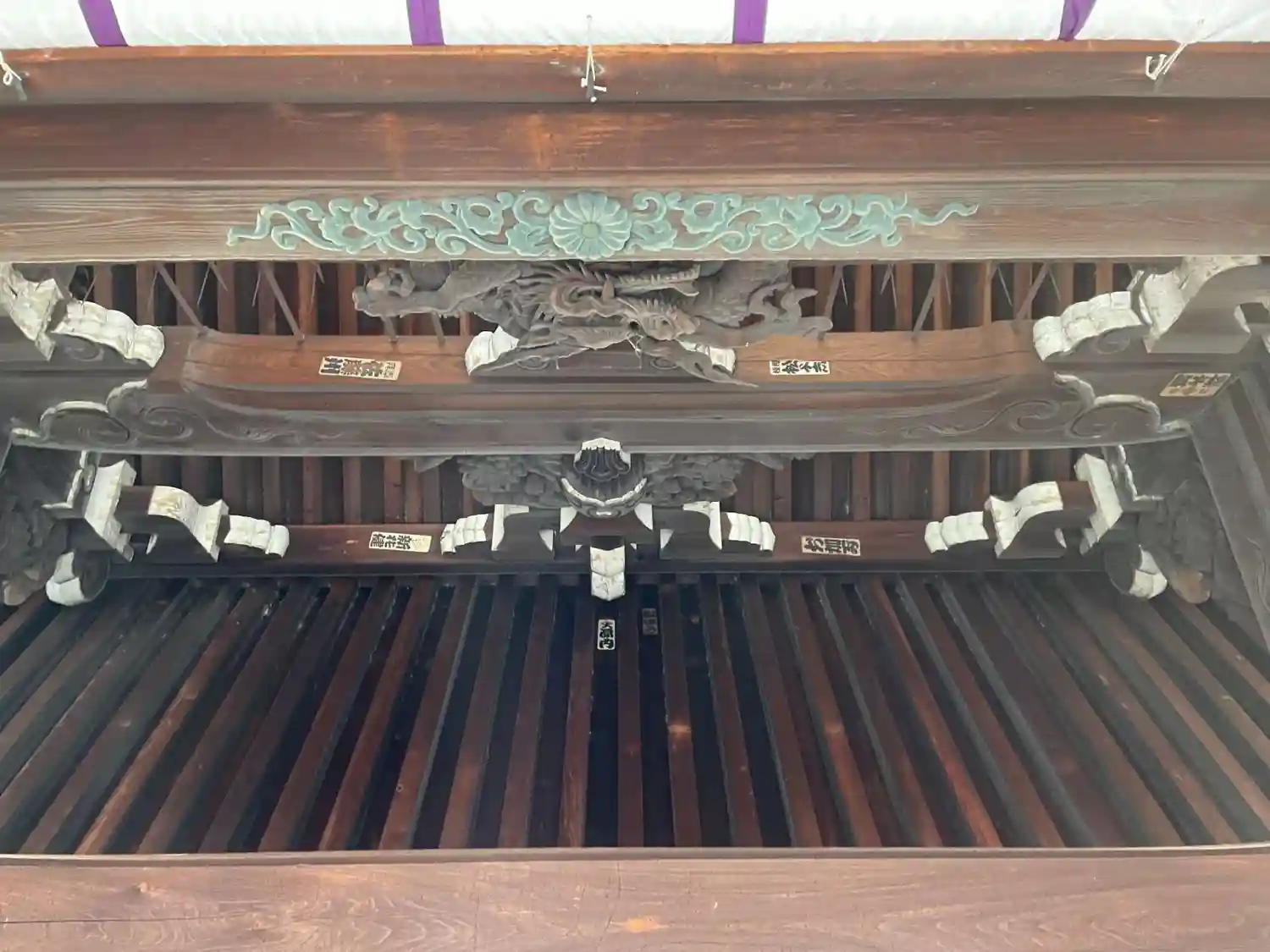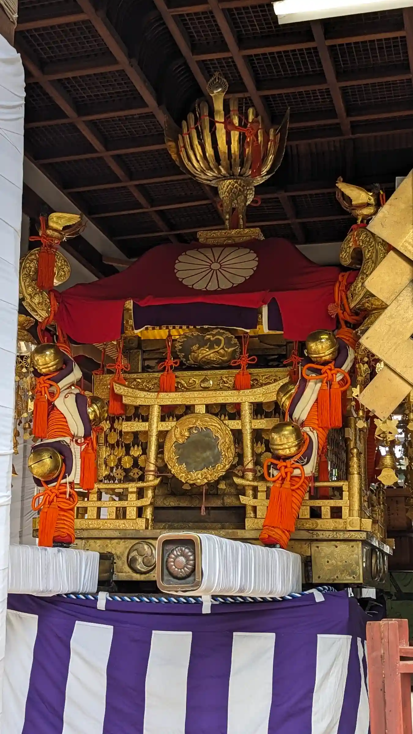 拝殿に大宮神輿、若…