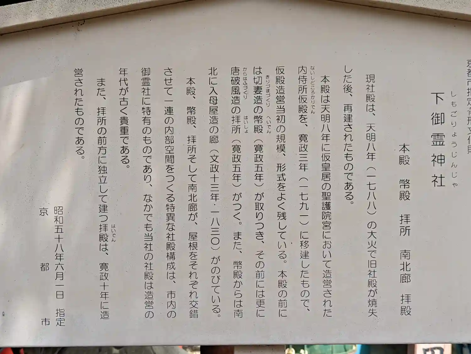 御霊八所、霊元天皇、山作闇斎を祀り疫病、災厄から朝廷と都民を守護する神社です。
