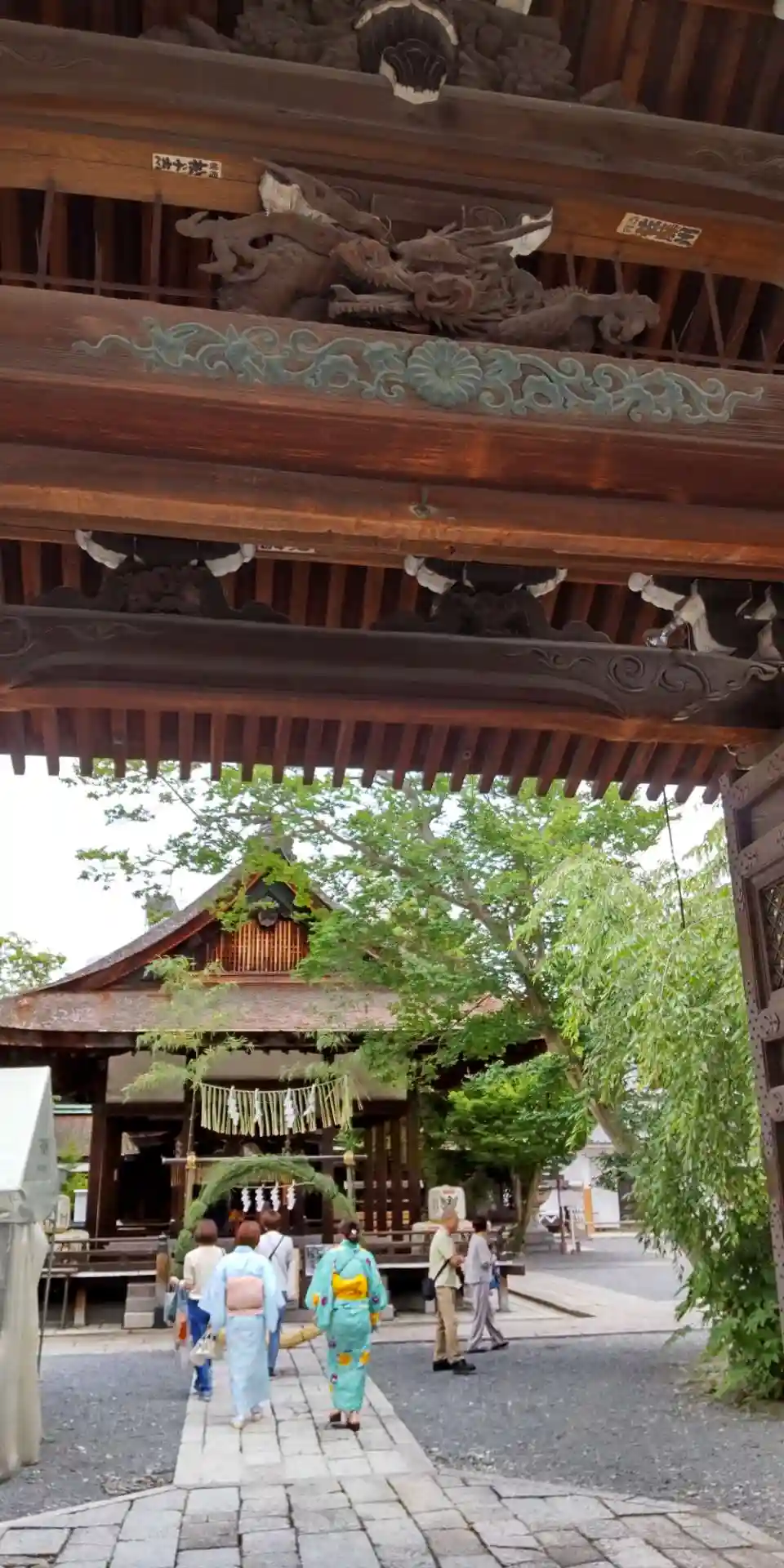 丸太町まで上がったところでこちらの神社にお詣りしました。夏越の祓えの茅の輪くぐりがありました。順番…