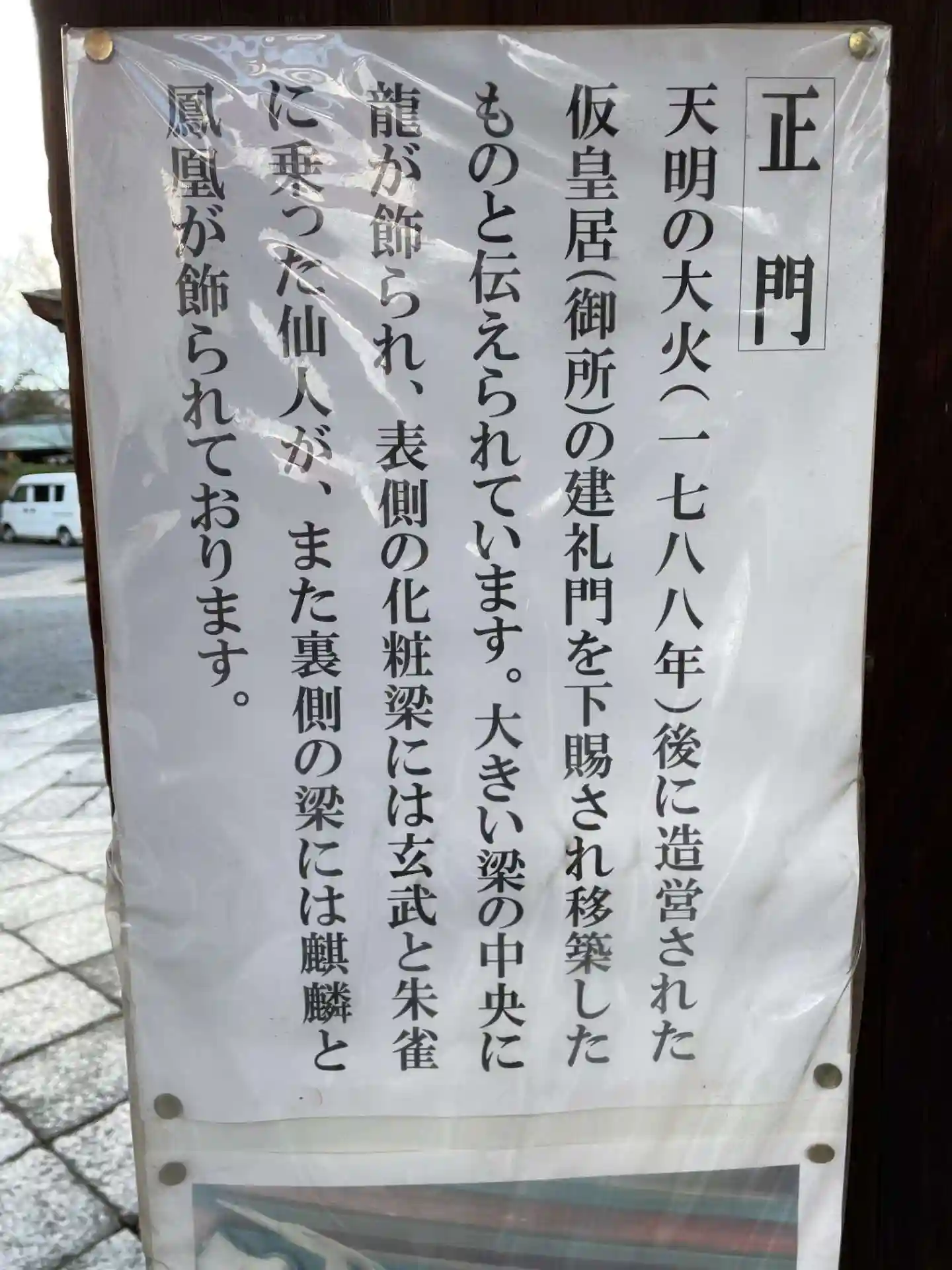 社伝が書かれた看板です。最近は写真に撮って家でじっくり読むのが好きになりました。