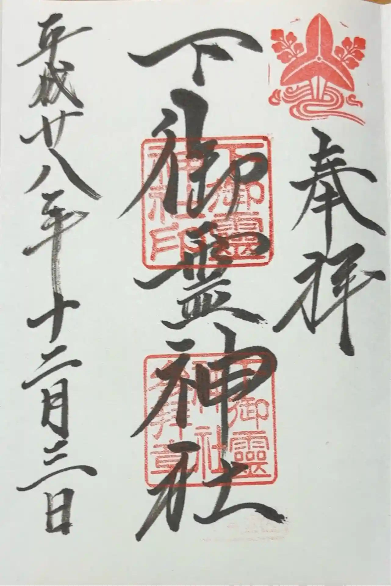 印-下御霊神社印 下御霊神社参拝章