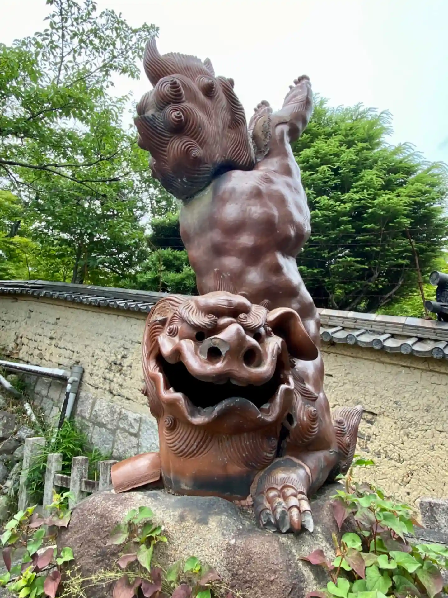 備前焼で作られた「逆立ち狛犬」さん。