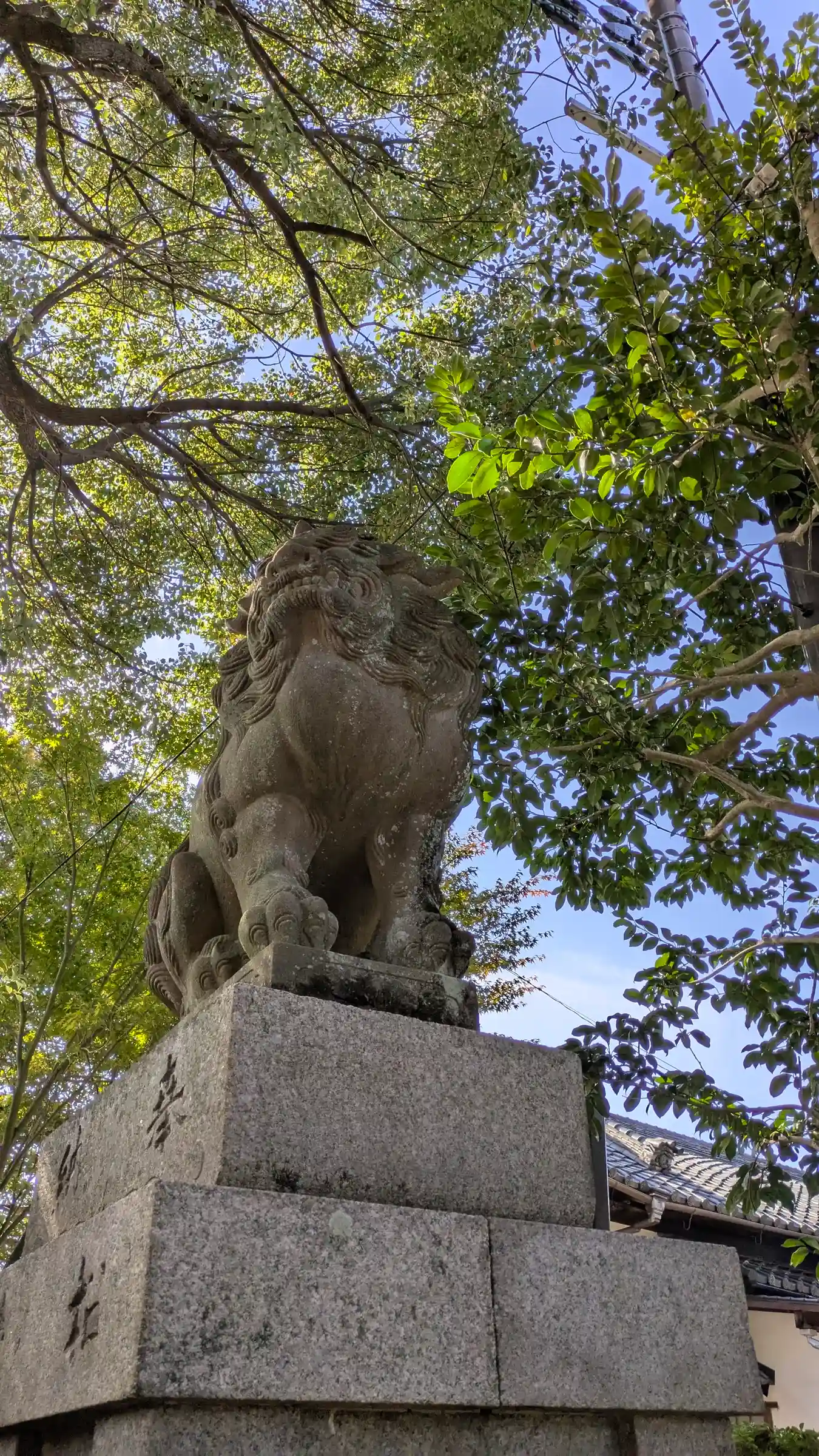 真如堂から下りて、最初の一の鳥居前に変わった狛犬さんが見られます。