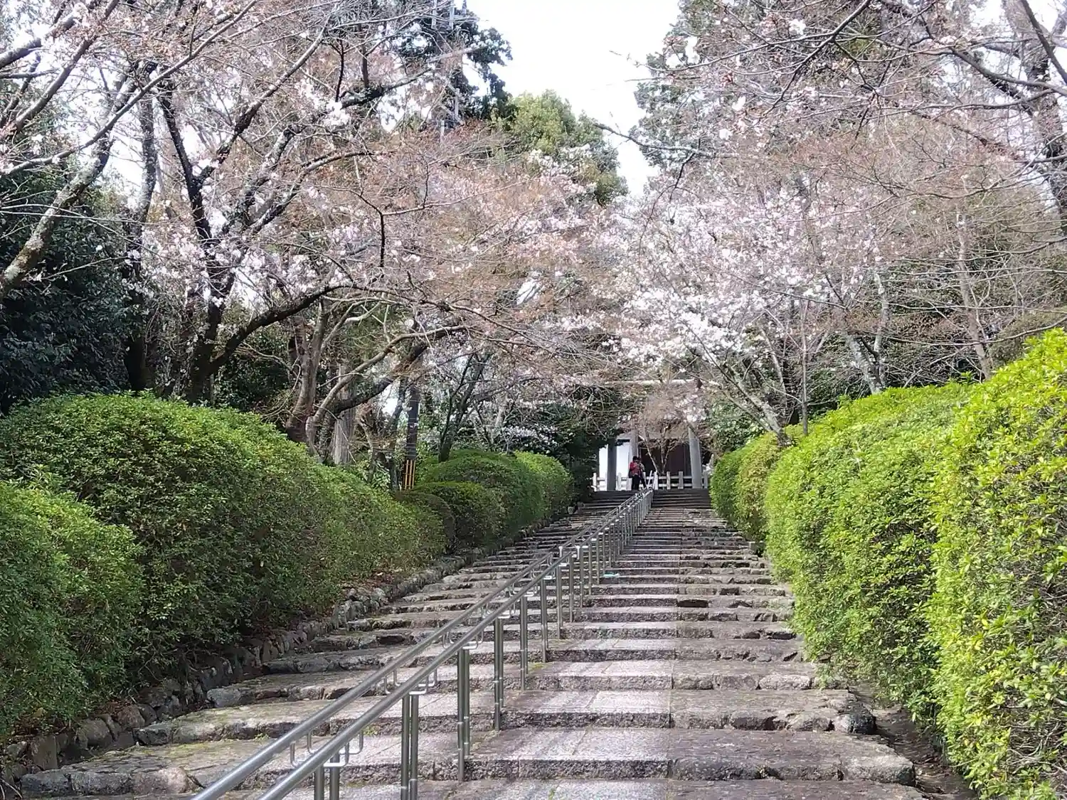 桜の花が参道の階段に、アーチになります 二の鳥居から眼下には、桜のアーチが続き、真如堂まで、一直線…