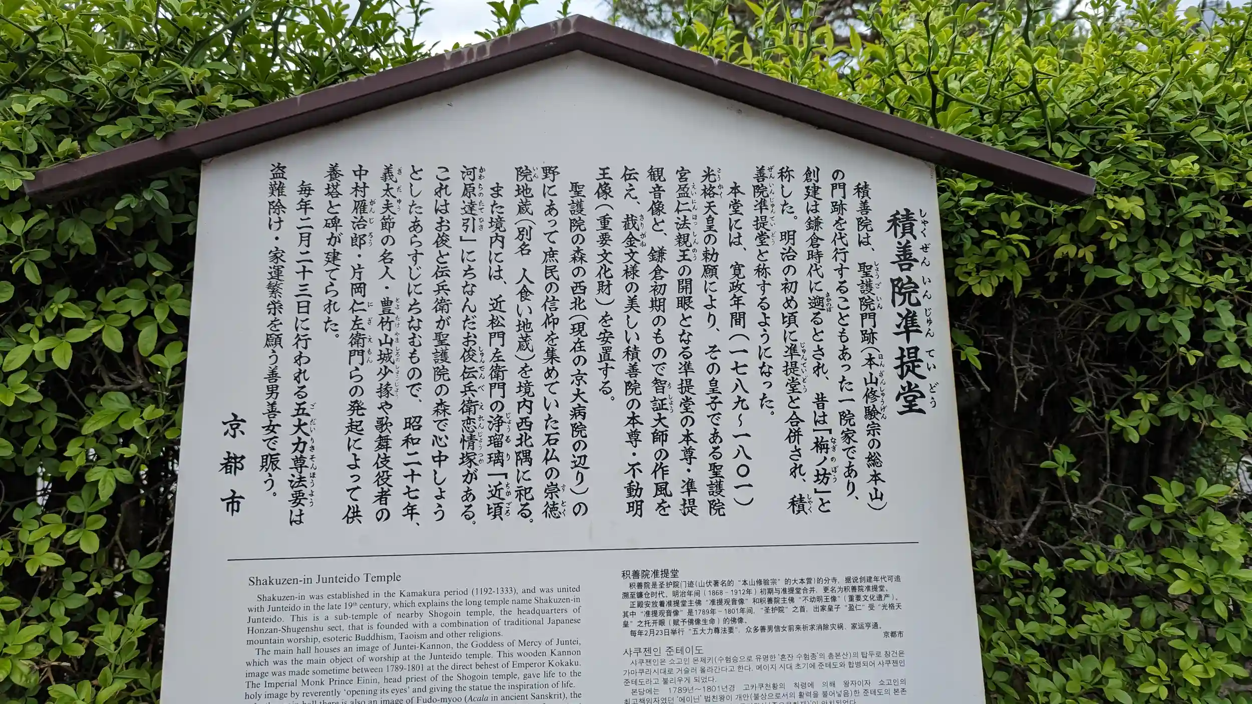 聖護院隣の積善院。まだお参りしたことなかったのと御不動様がいらっしゃったはずなので参拝🤗御不動様の御朱印は本山の聖護院でと言われました(ですよね)😅むしろ聖護院より落ち着ける境内でこっちのほうが好きかも🤗