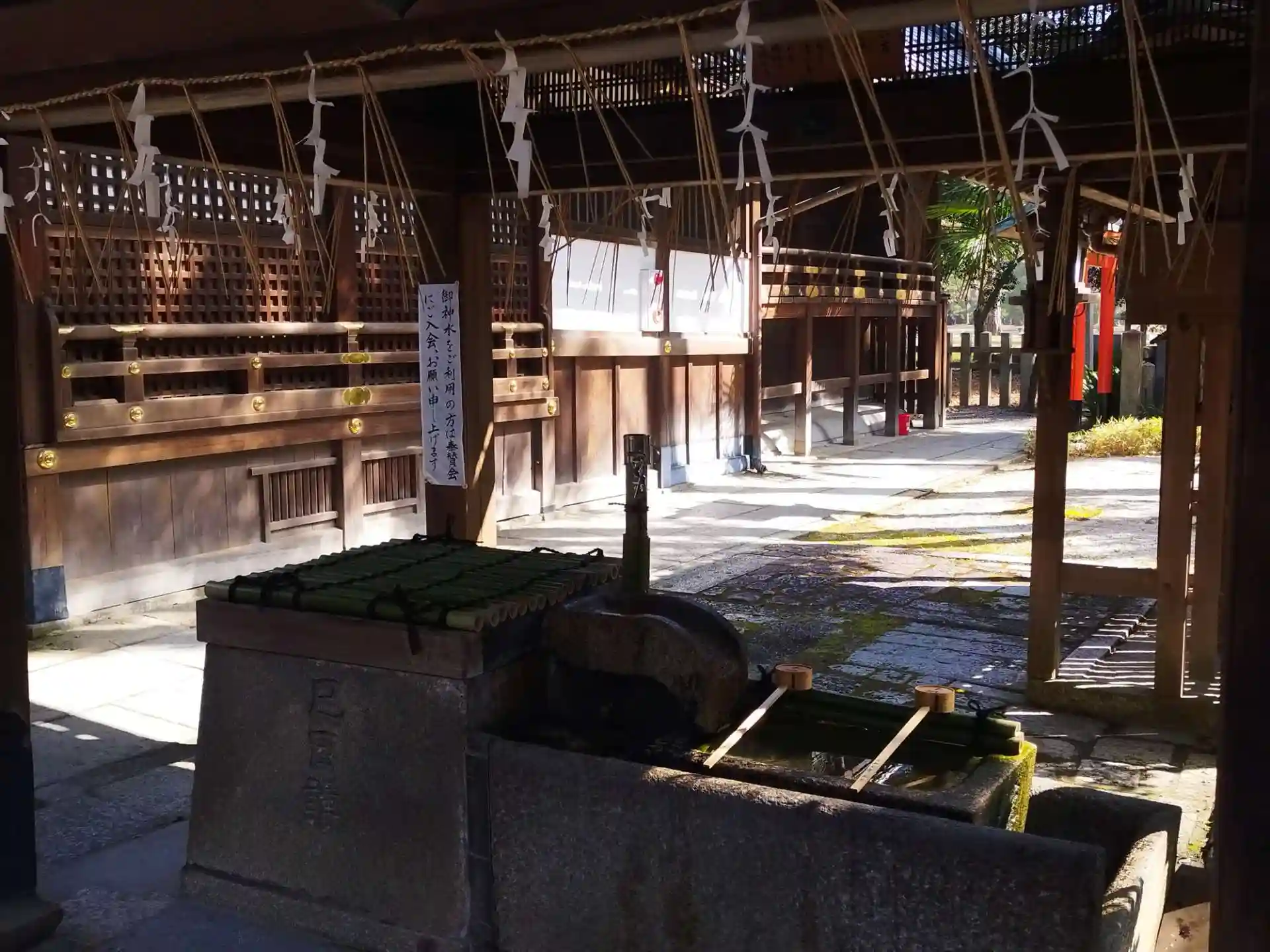 京都御苑内に鎮座。旧西園寺家の鎮守社で、祭神は【妙音弁財天】、音楽の神様としても信仰されている。1224年(元仁元年)、西園寺公経が北山殿(現在の金閣寺の地)造営の際に建立した妙音堂に由来するとされる。その後幾多の変転を経て、近古には赤八幡京極寺にもしばらく鎮座され、1769年(明和6年)、西園寺邸の移転と共に現在地に移り再興、禁裏御祈祷所と定められ、また庶人の信仰も集めるようになった。明治になって西園寺家は東京へ移り、妙音堂は廃祀の危機に合うが地元有志の尽力により存続、1878年(明治11年)、かつての鎮座地名をとり現社名に改められる。