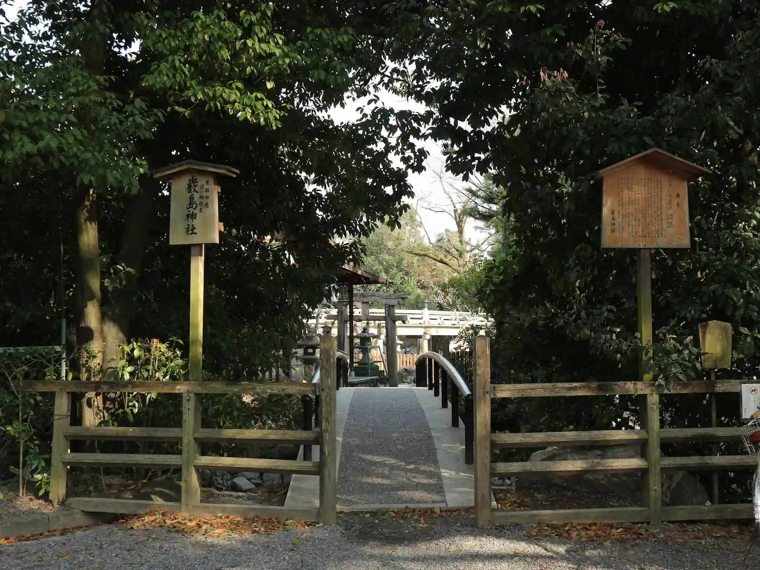 京都御苑内の厳島神社。鳥居が大変珍しい形です。