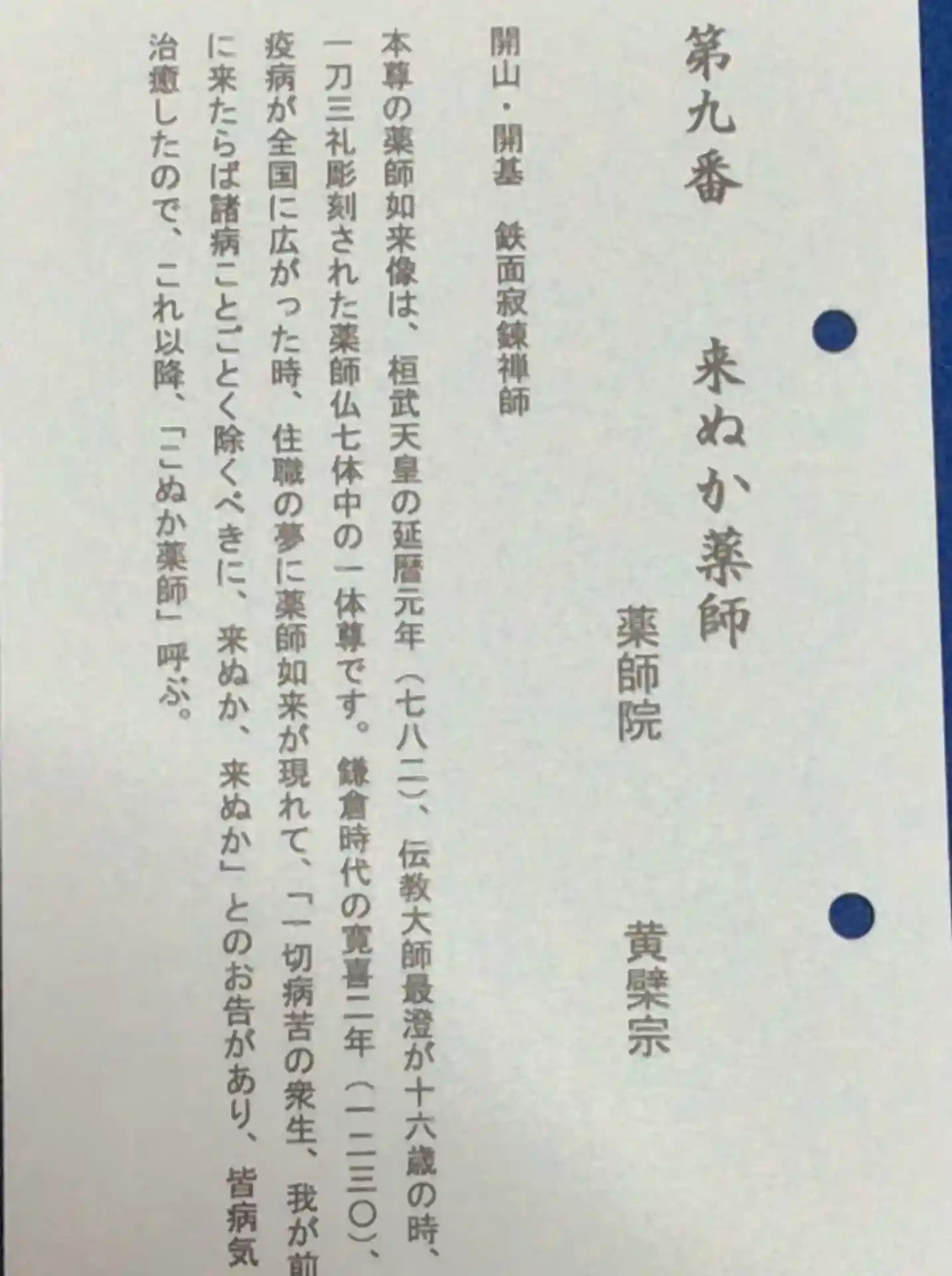 不来乎薬師(こぬか薬師)ともいわれます、黄檗宗の寺院 京都十二薬師霊場 全て参拝すれば満願証がいた…