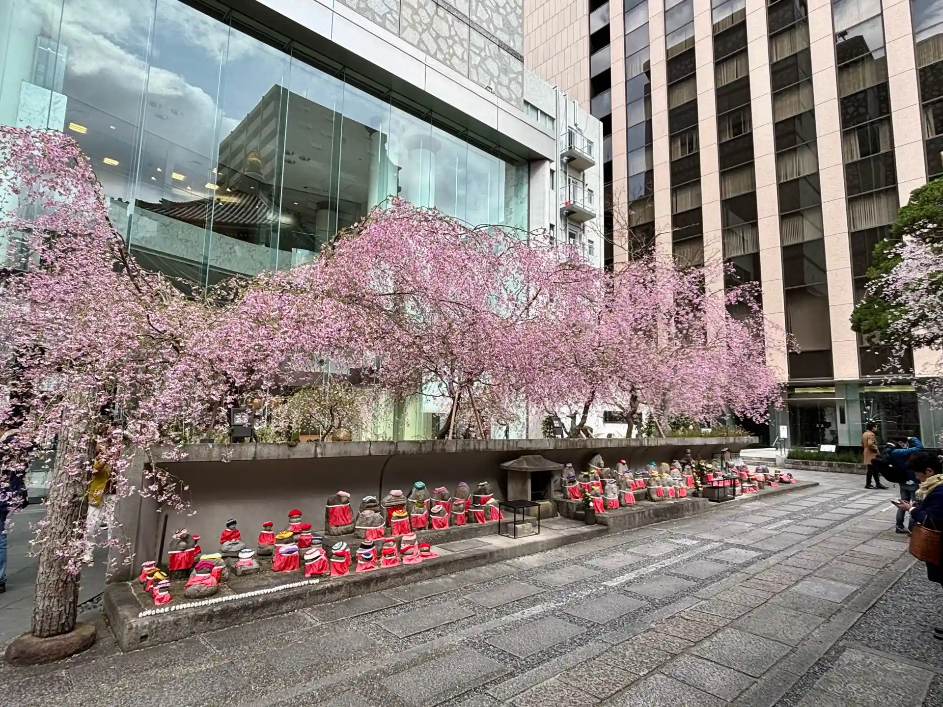 少し肌寒いですが、六角堂の枝垂れ桜はとても綺麗でした。烏丸通り沿いのスタバから見る六角堂と桜もGOOD。