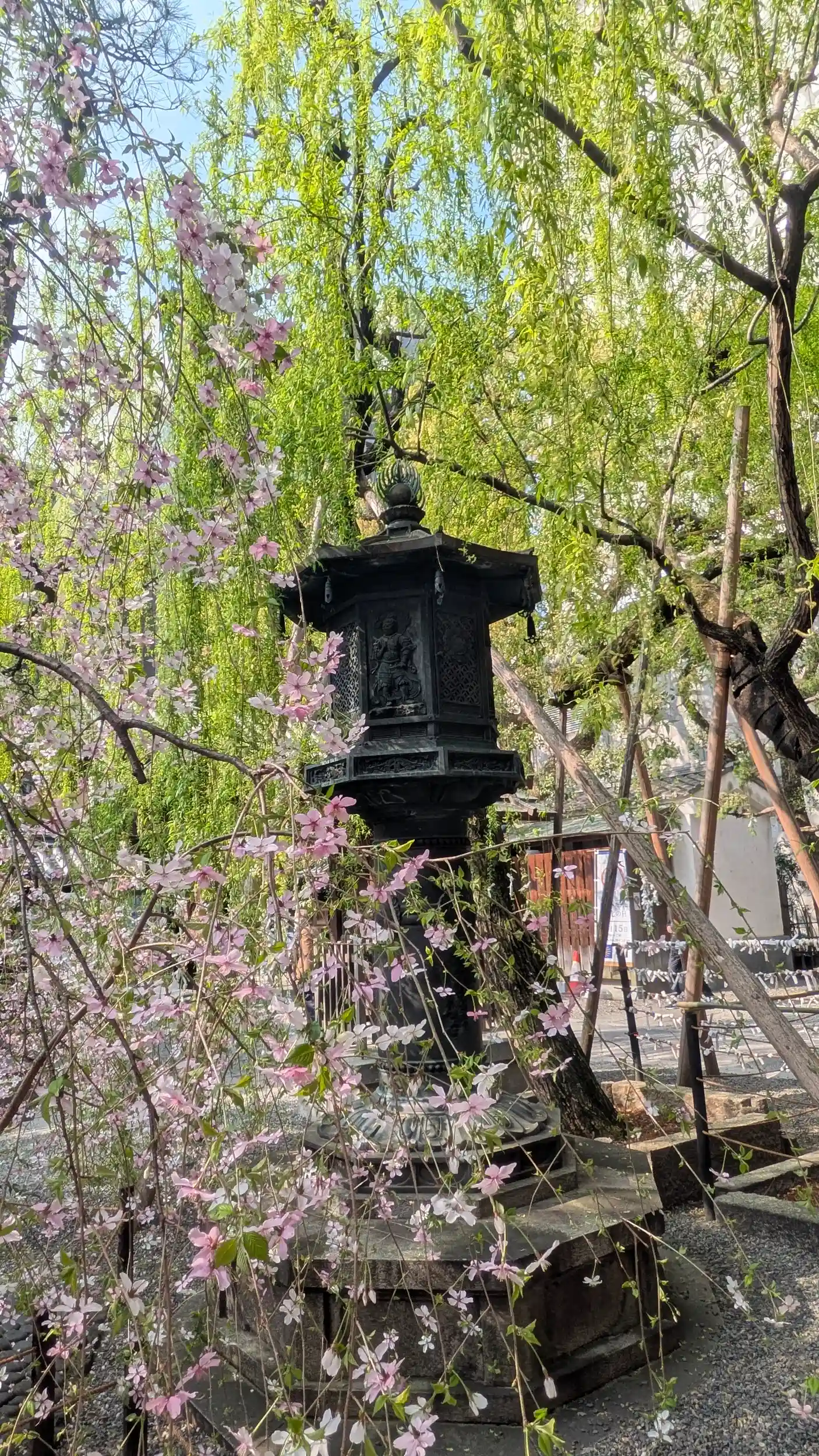 京都桜の陣。インスタで切り絵の御朱印をお見掛けしたのでお詣り。山門くぐり本堂前で・・・おや?なんか見覚えのある方が・・・と思ったら尊陽院の奥様😲この様なところでとご挨拶したらお連れさんに案内してもらっていたそうですが本堂前に行けそうにないのでとのこと😲理由は・・・鳩😅鶏が大の苦手なのだと前にうかがっていましたが鳩もダメなんや😅「どうぞどうぞ、お詣りしてきてください」とのことでしたのでお別れして本堂へお詣りさせていただきました。とはいえ烏丸駅近のもはや枝垂れ桜の有名どころとなっている為観光客も多くゆっくりと花見というわけにもいかず・・・😅ほどほどにして授与所へ。切り絵御朱印のことを伺うと「JR東海」の申し込みが必要とのこと😫「そうだ京都行こう」のあれかぁ・・・そういえば平安神宮とかのみてたけどここもでしたか・・・😥ということで御朱印は断念し、後にしました。