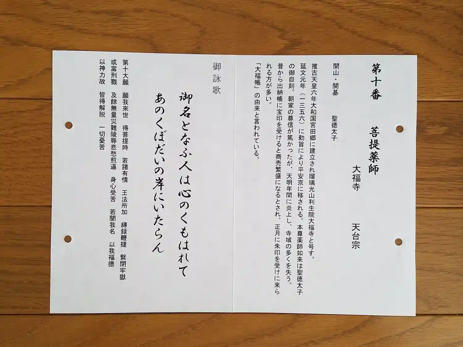 二面の真ん中に菩提薬師と「みなとなふ 人は心のくもはれて あのくぼだいの きしにいたらん」の御詠歌が書かれ、瑠璃光山菩提薬師如来の印が押されています。