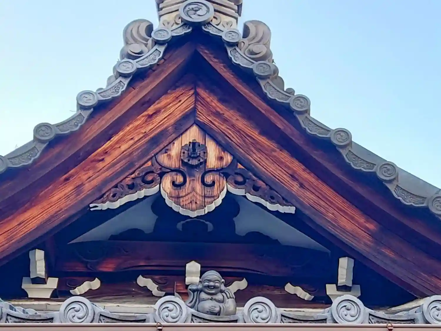 屋根の上に布袋様がいることを発見。なんだか可愛らしいです。
