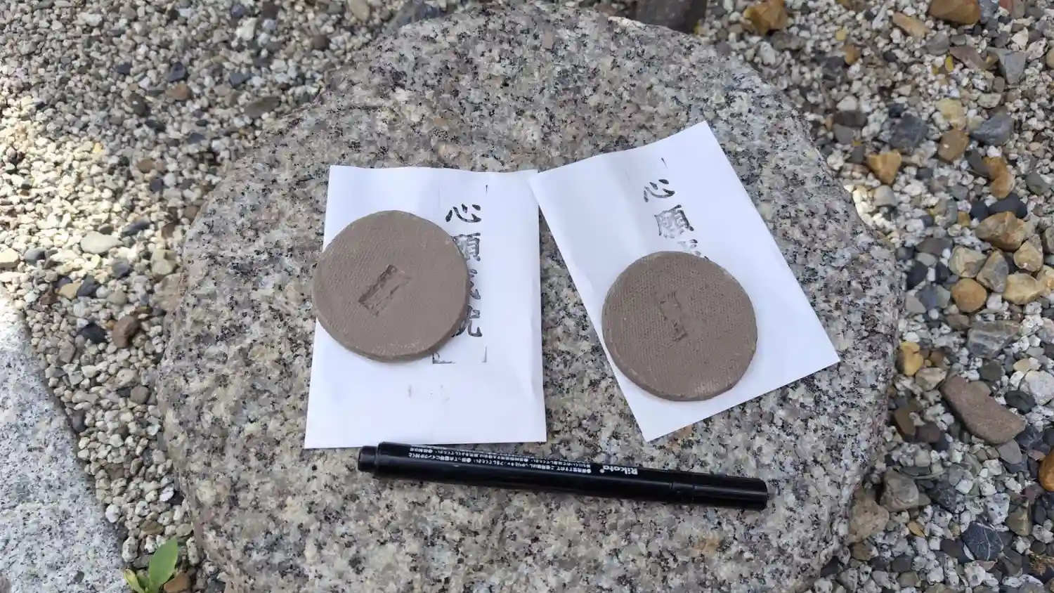 以前は、縁切りのかわらけは無地、縁結びは中央に色つきだったみたいですが