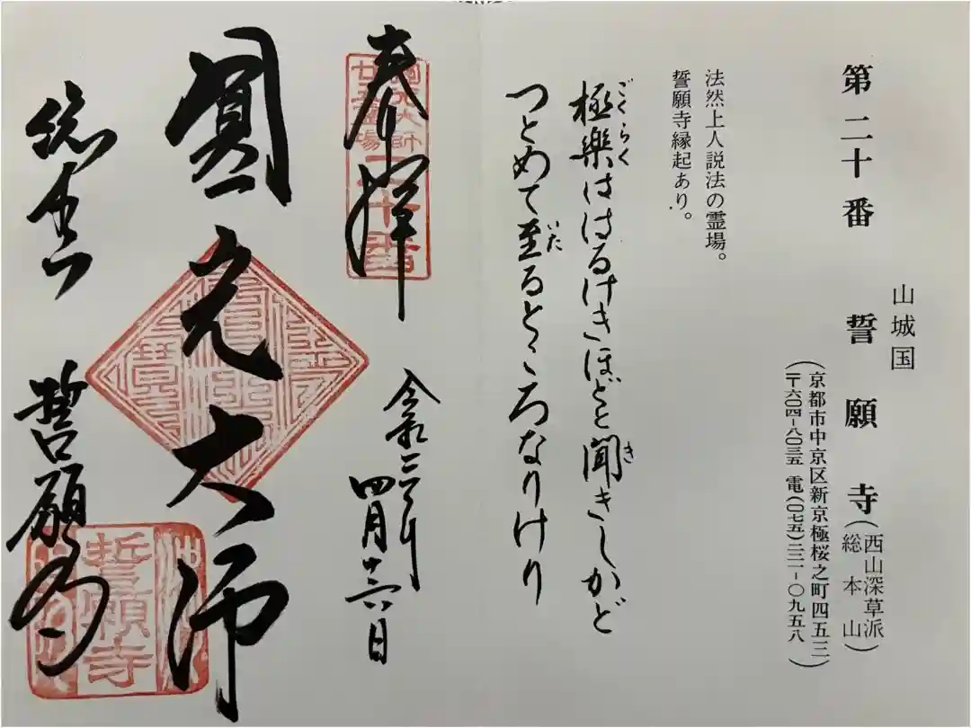 誓願寺の阿弥陀如来さまの御朱印