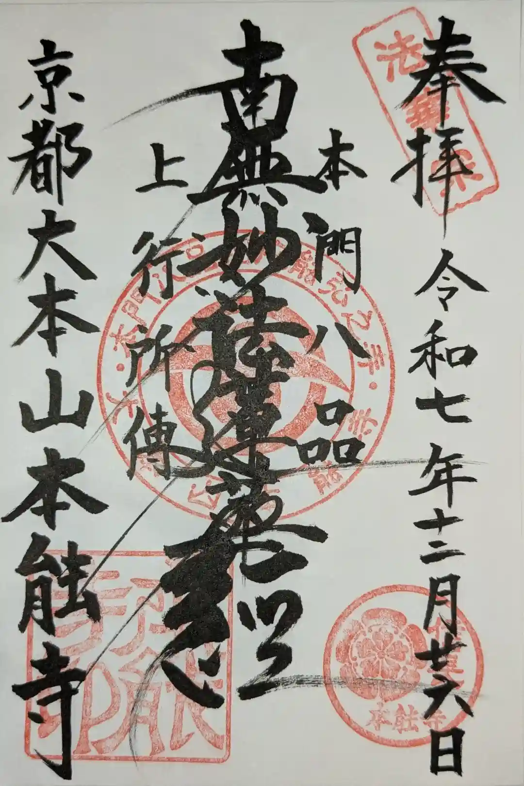 表面に寺紋の雁金紋と大本山本能寺の文字が入っています。