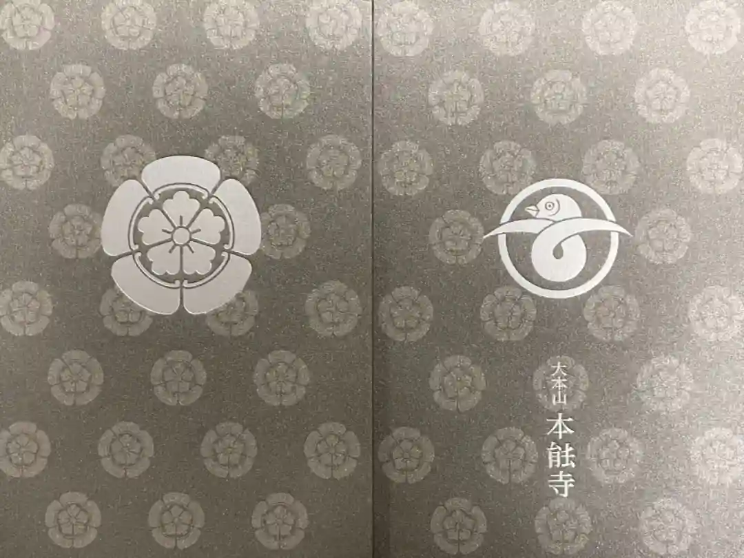 表面には織田家の家紋である木瓜紋と、寺紋の雁金紋、大本山本能寺の文字が入っています。