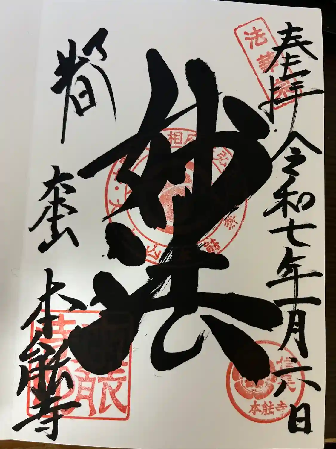 直書きの御朱印です