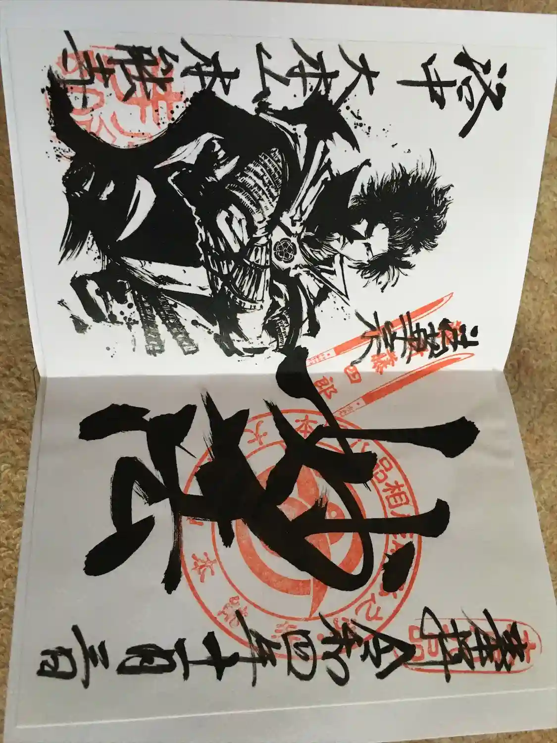 大宝殿にて開催中の刀剣展に来ました。伝蘭丸所持の大太刀スタンプを押した御朱印をいただきました。
