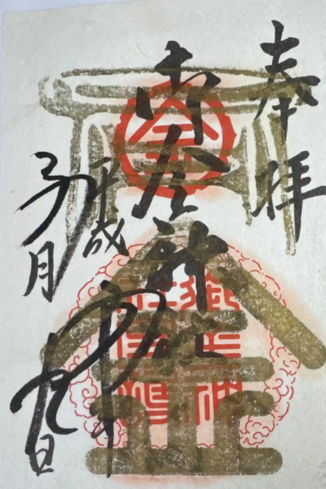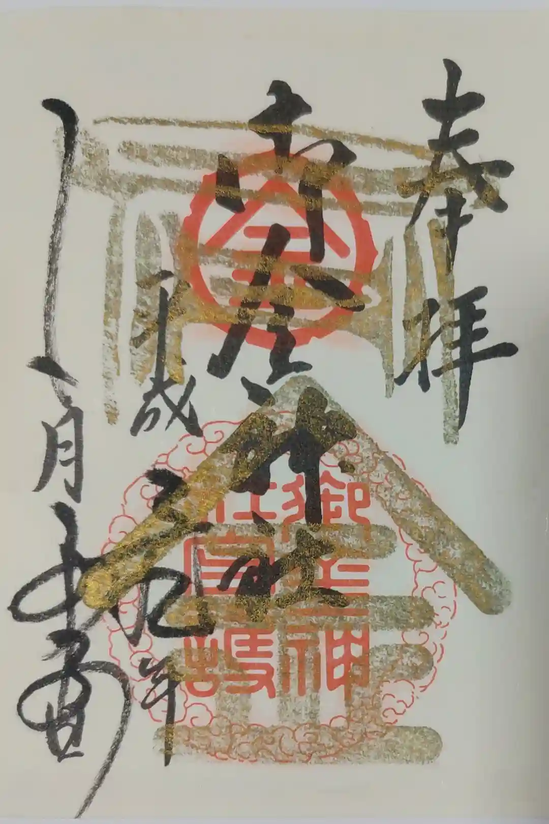御朱印は書置きのもののみでした。金の鳥居をあしらったデザイン。