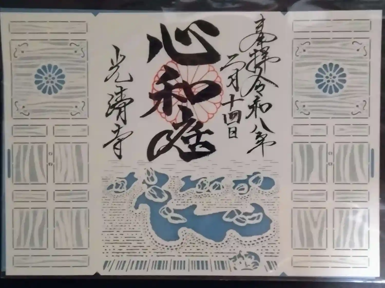 切り絵の御朱印の柄は、実際にはこんな感じに見えます。